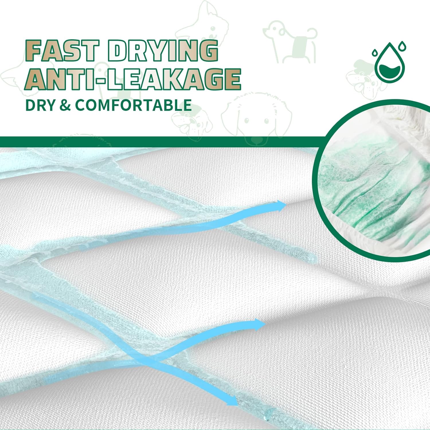 - SUPER ABSORBENCY: With advanced absorbent SAP materials, our puppy diapers offer superior absorption capacity. Whether dealing with occasional accidents, male marking, or incontinence , our male dog diapers will keep your dog dry and comfortable throughout the day or night