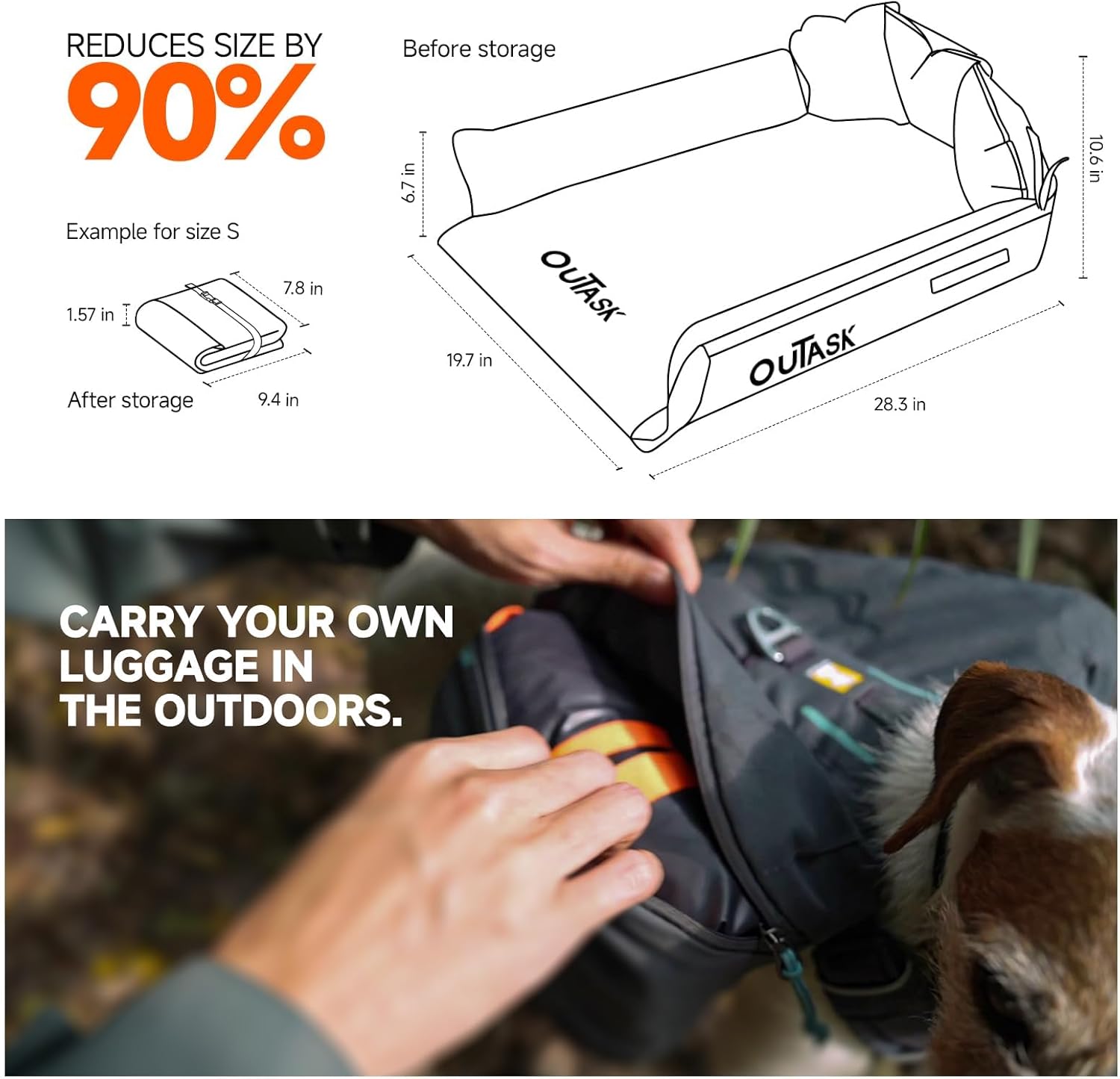 - Portable Outdoor Dog Bed:With an inflatable structure, the dog bed saves over 90% of the carrying volume when stored. The valve features a universal design, making it compatible with most inflatable devices on the market, and includes separate inflating and deflating functions.