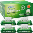 - 4 PACKS OF 50 - 200 WIPES: Convenient and easy to take along, 4 packs of 50. Essential dog supplies. Flip top lid keeps wipes moist and fresh. Good for all pets: cats, dogs puppies and kittens. Safe, soft and gentle for everyday use.