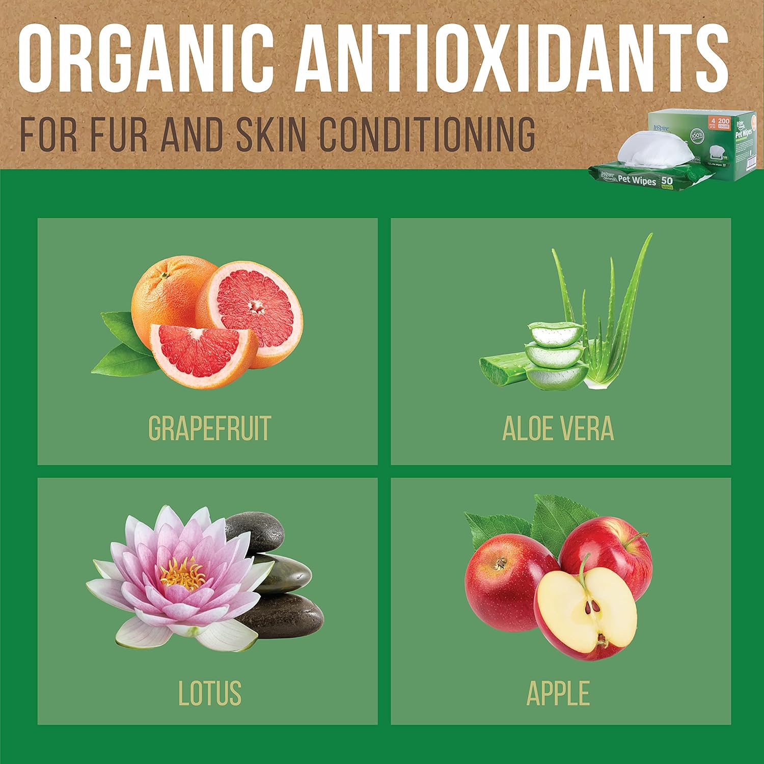 - PLANT BASED PET WIPES: Pet Supplies that are good for your pet and good for the earth. Inspire Naturals Pet Wipes for dogs and cats provide safe and effective cleansing, deodorizing, and conditioning, and will leave your pet fresh, clean, and sparkling. Earth friendly and compostable pet wipes, natural cat wipe, dog wipe. Kitten and puppy supplies. Inspire Natural dog bathing supplies. Great as dog paw wipes and dog cleansing wipes.