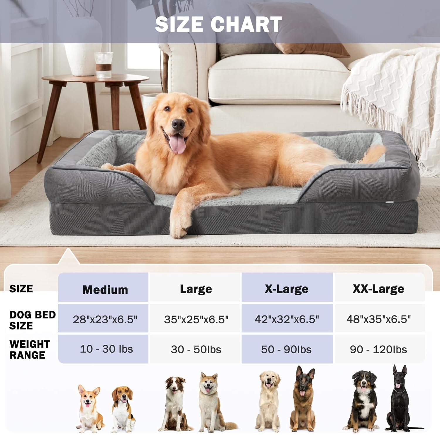 - 🐶SIZE DETAILS: Orthopedic Dog Bed, Medium, 28" x 23" x 6.5" (3.5" Base Foam Height; Sleep Surface: Approx. 20.5" x 19") For Dogs Up to 30 lbs. Large - 35" x 25" x 6.5" (3.5" Base Foam Height; Sleep Surface: Approx. 26.5" x 20") For Dogs Up to 50 lbs. Extra Large - 42" x 32" x 6.5" (3.5" Base Foam Height; Sleep Surface: Approx. 34" x 27.5") For Dogs Up to 90 lbs. XXL -48" x 35" x 6.5" (3.5" Base Foam Height; Sleep Surface: Approx. 39.5" x 31") For Dogs Up to 120 lbs.