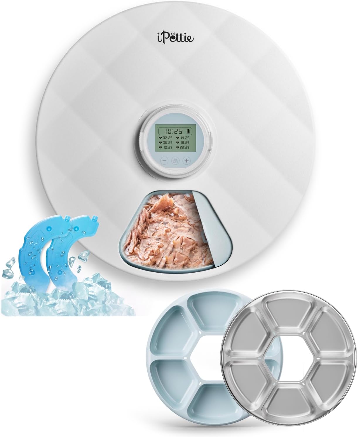 iPettie Brioche Automatic Wet Food Feeder for Pets with Two Ice Packs, Perfect for Newborn Senior Sick Cats and Small Dogs, Stainless Steel and PlasticTray