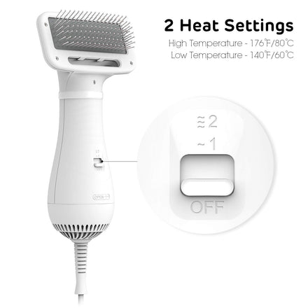 - 【2 Heat Settings & Whisper-Quiet】Pets are terrified of the noise human hair dryer. Our dryer is whisper-quiet (<60 dB) and it won't scare your pets away. The dryer provides high and low heat. Choose the comfortable heat for your pet. *Note, this dryer uses a lower heat setting than a human hair dryer to protect your pet from getting burned.*