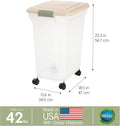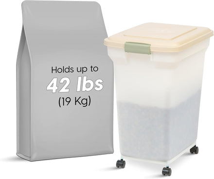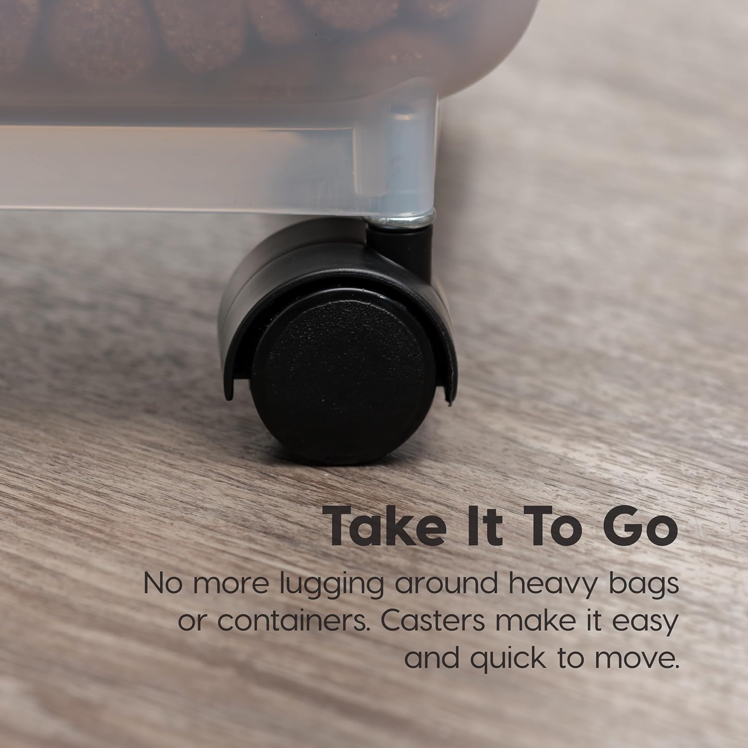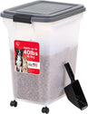 The IRIS Premium Airtight Pet Food Storage Container is the perfect solution to store dry pet food. The airtight sealed storage container locks in freshness and keeps moisture and humidity out. The snap-tight latch confirms that the lid is shut tight, while the wide lid offers easy access for scooping dry pet food. The plastic food container features a translucent body to quickly check content levels. This rolling container can be also used as a charcoal container or wood chip storage. Made in the USA.