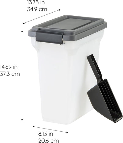 The IRIS USA Dog Food Storage Container is the perfect solution for storing dry pet food in a compact and convenient way. Designed with an airtight seal, this container helps keep your dog, cat, or bird food fresh longer by locking out moisture, pests, and odors. Built with rolling wheels, it’s easy to move even when full great for quick feeding or cleaning around your storage area. The included scoop makes portioning simple and mess free, while the compact size fits neatly in tight spaces like pantries, cabinets, or corners. Whether you're storing kibble, treats, or bird seed, this pet food container delivers functionality and freshness in one smart package.