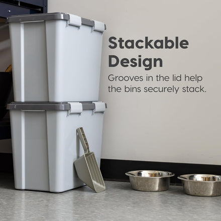 - STACKABLE & SECURE STORAGE: Maximize your storage space with a stackable design and 4 secure latches, offering organized, space-saving storage while ensuring your pet’s food stays protected and easily accessible.