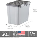 Keep your pet's food fresh, organized, and easily accessible with the IRIS USA Dog Food Storage Container. This 36-quart bin features a WeatherPro gasket seal lid with 4 secure latches to ensure maximum freshness and protection from pests. Its generous capacity can hold up to 30 pounds of dry food, depending on the type you buy, making it ideal for larger pets or bulk buying. The container includes a 2-cup scoop for easy measuring and is made from BPA-free materials, ensuring safety for your pet. Its stackable design and secure latches save space and maintain food freshness, while the durable and stylish gray/dark gray finish blends seamlessly into any home décor. Upgrade your pet care routine with this high-quality storage solution and give your pet the fresh, delicious meals they deserve.