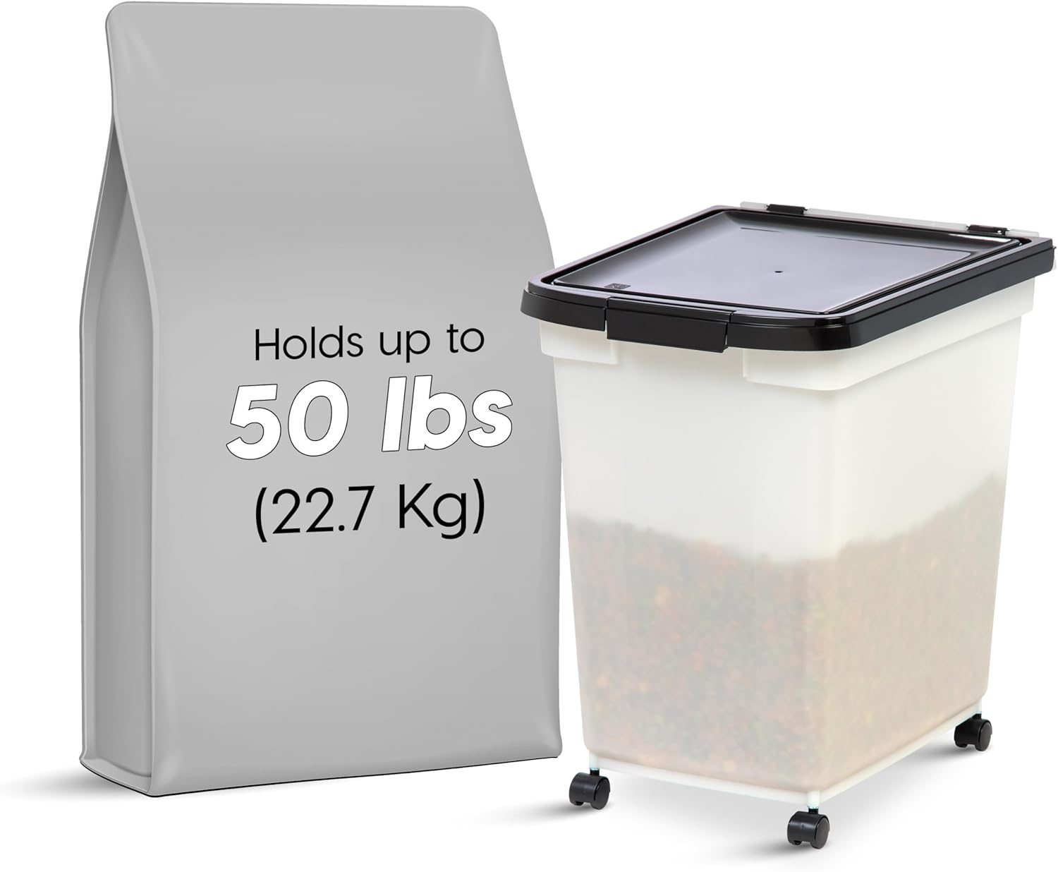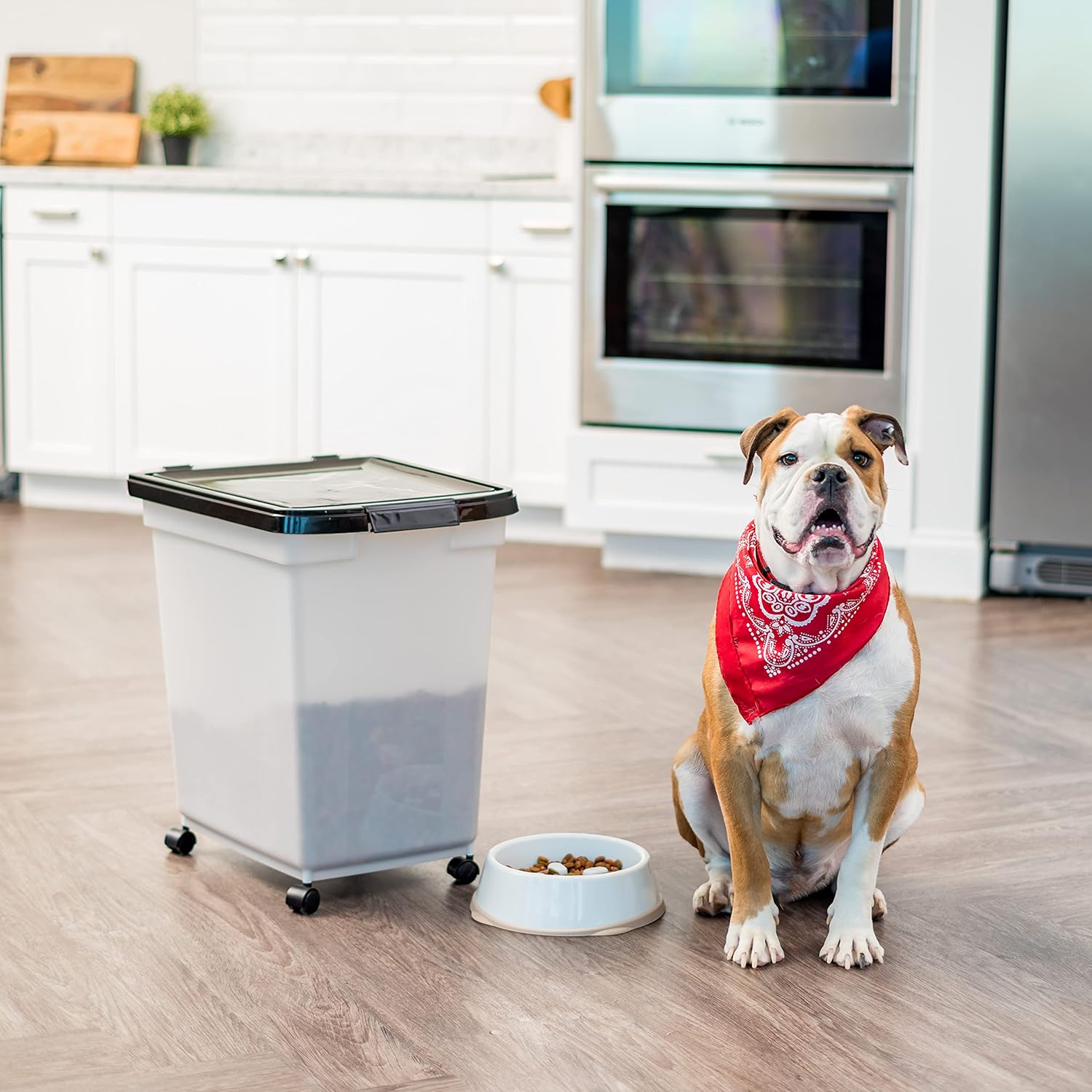 - FOOD FOR ALL: Store your cute family member's dry foods into sealable and portable pet food container. 65 Qt size food storage container is great for storing 50 Lbs of dry food (the capacity will depend on what kind of pet food you store)