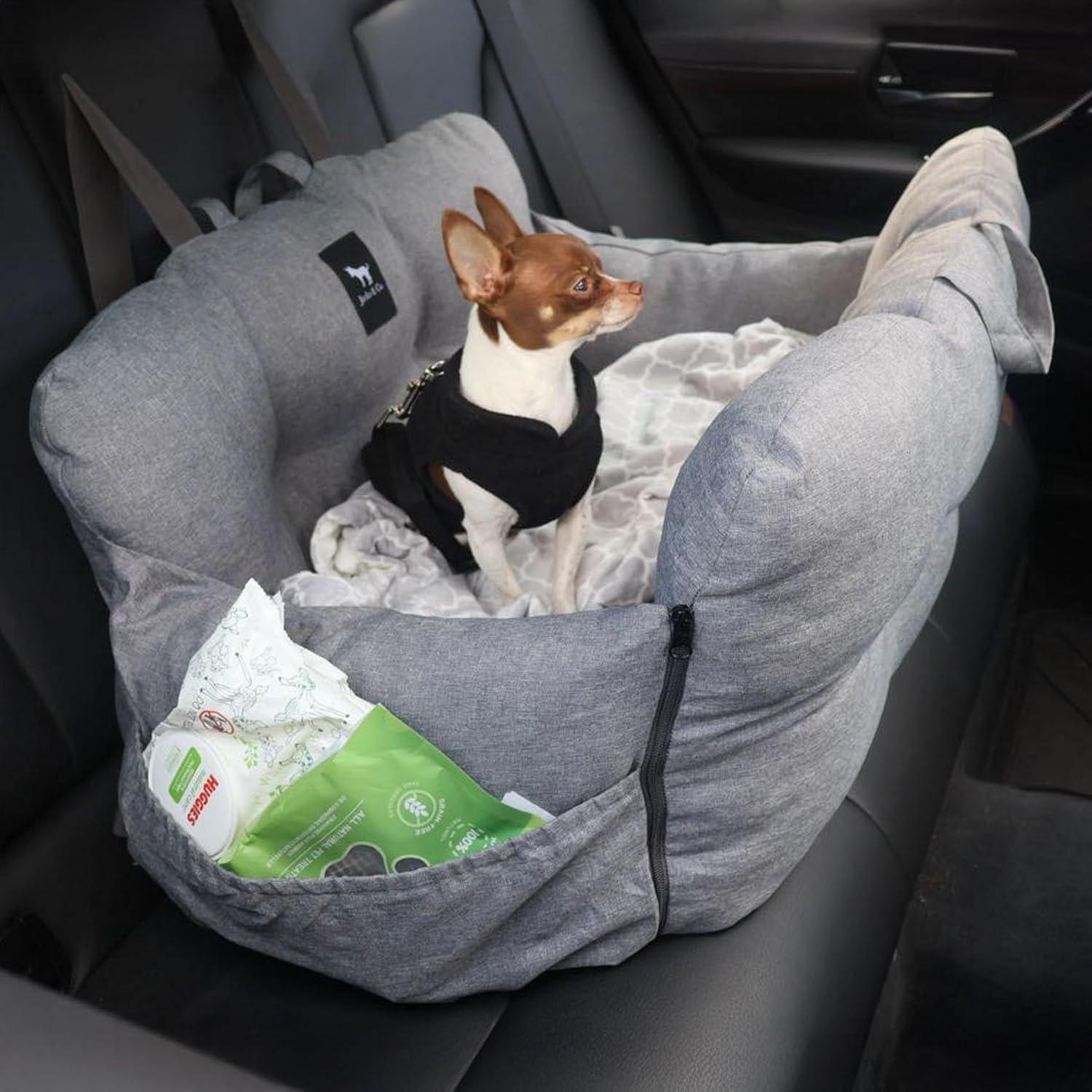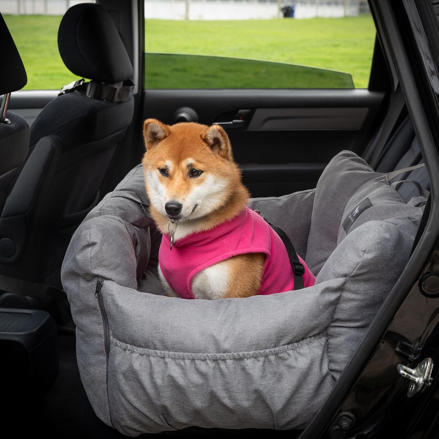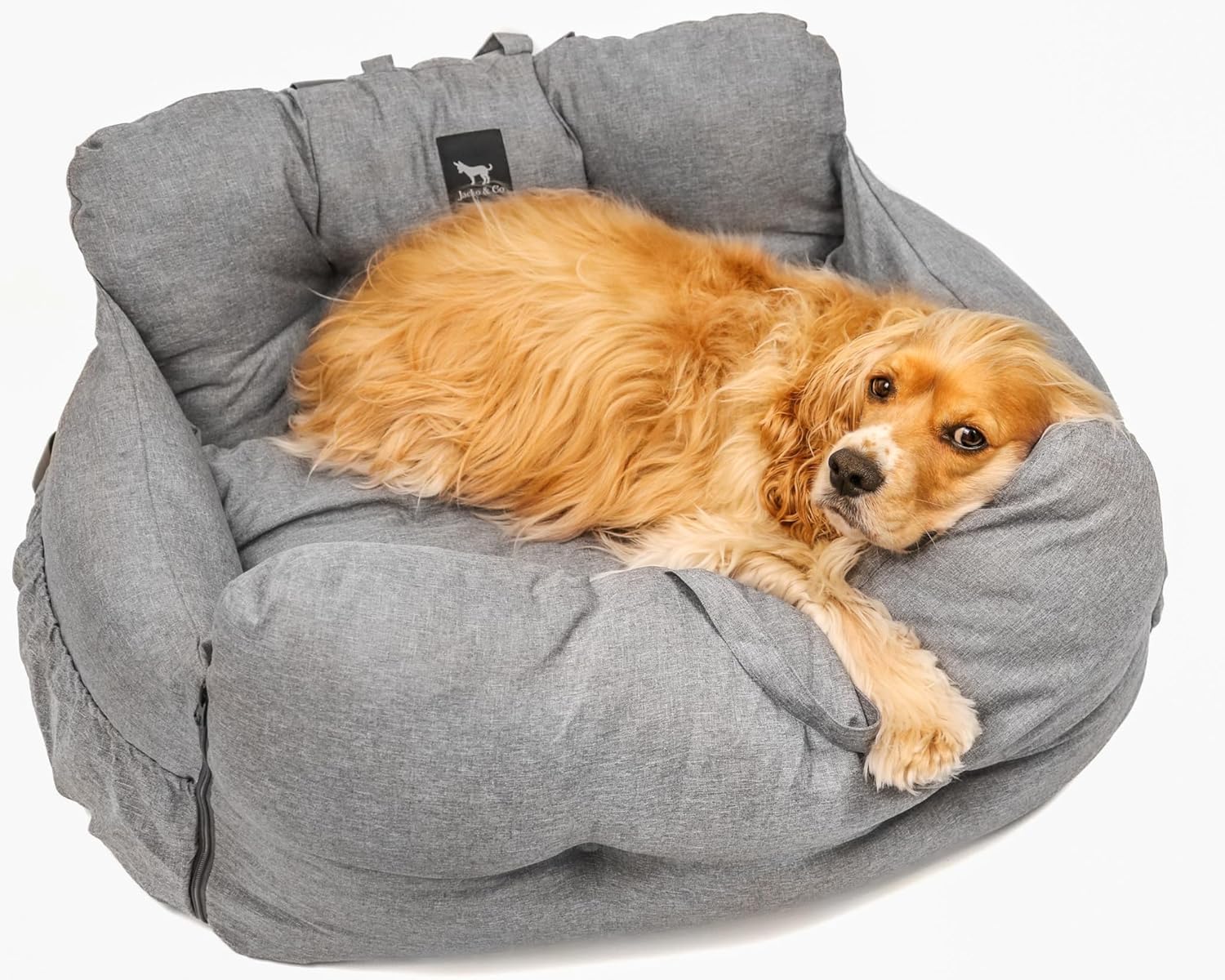 JACKO & CO - Premium Medium Dog Car Seat Bed for Dogs 25-40lbs for Back Seat Use Only - Portable Soft Cloudlike Pet Travel Safety Bed - Machine Washable & Water Resistant (Grey/Medium (25-40lbs)