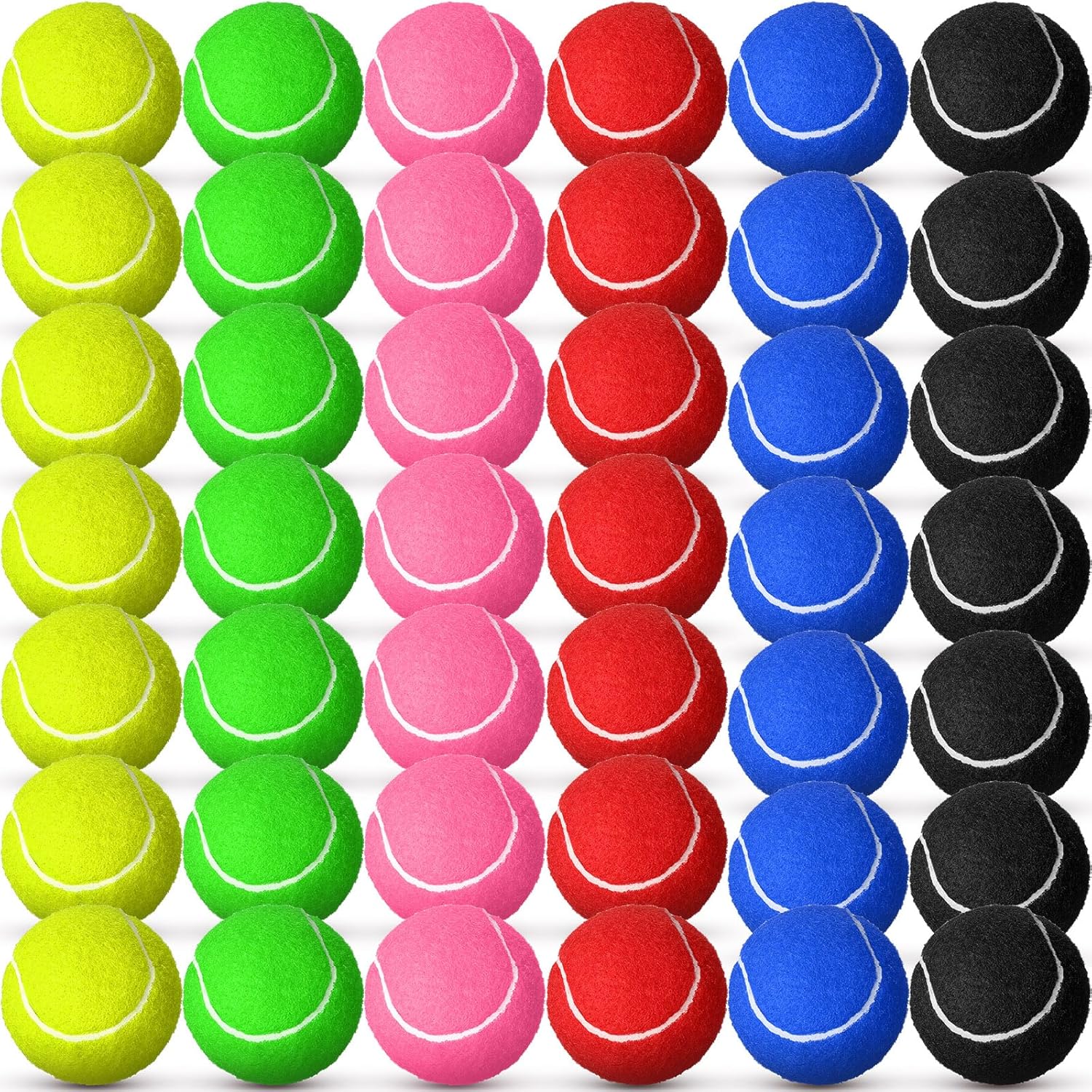 Features: Tennis clubs accessories: These tennis balls for practice are not only a good helper for tennis teachers, but also a nice choice for tennis clubs. They can also be applied in family activities, school sports, tennis clubs, tennis parties and so on. Accompany your pet: Pets are important members of our family and spending some time with your dog is not only good for their health but also helps train your dog to be smarter, use the training toy ball to play with your dog and enjoy what they bring to you comes with fun and warmth. Specifications: Material: rubber, felt Main color: red, blue, pink, yellow, green, black Size: approx. 2.5 inches in diameter Package includes: 48 x Tennis balls Notes: Manual measurement, please allow slight errors on size. The color may exist a slight difference due to different screen displays.