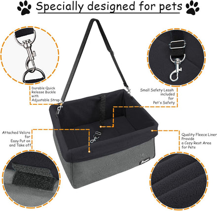 - EASY TO INSTALL- Customize the height of boosters for pets. A headrest strap fits around the headrest, another strap fits around the car seatback, two vertical straps on the dog bed car seat back let the seat belt go through for extra stability.