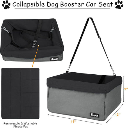 - IDEAL SIZE UP TO 24LBS- Dimensions of dog booster car seat: 16"L x 13"W x 9"H, Jespet Pet boosters seat for car can hold dogs up to 24lbs. Pet 20-24 lbs may have long body too large to lay down in seat.