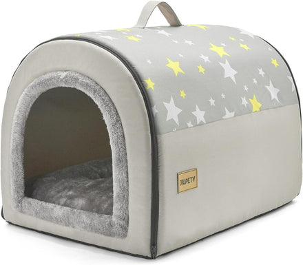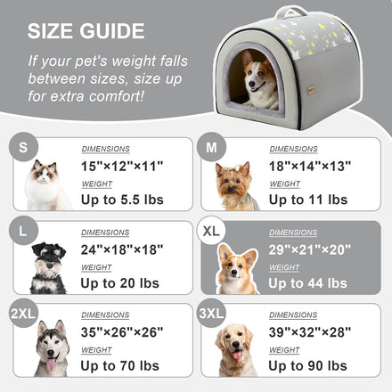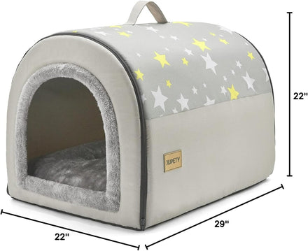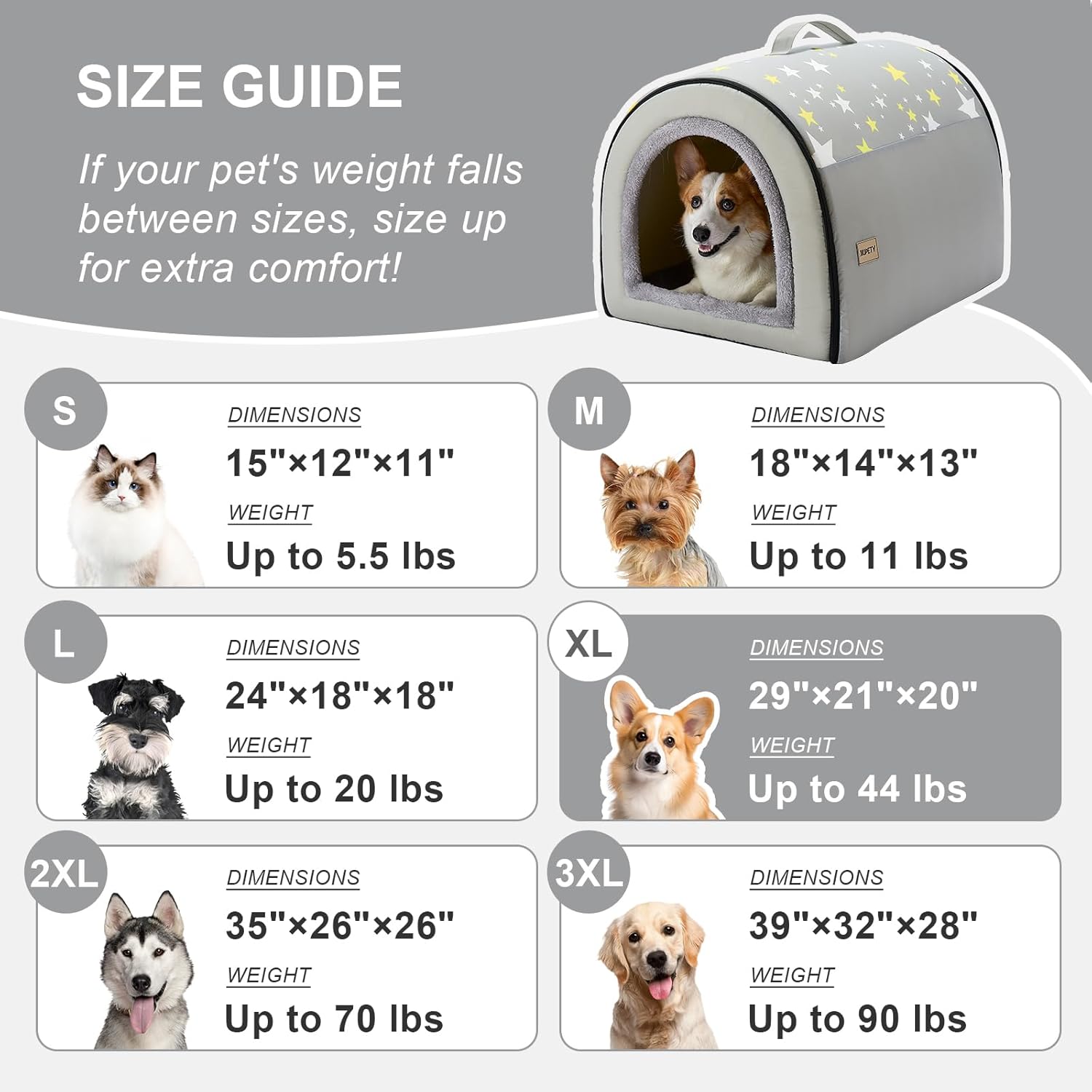 - Two Ways of Use: The 2 in 1 dog house can be a pet bed when you want. In autumn and winter, which is both warm and in line with pets' habit of hiding. In summer, it can be a sofa shape after pressing down the roof, which is airy and comfortable