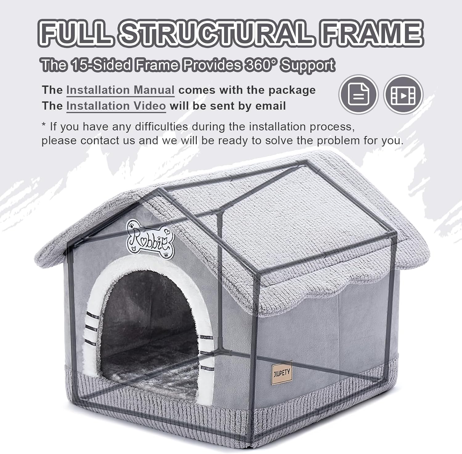 - SUPPORT FRAME - This dog tent house is supported 360° by a 15-side frame. We will provide Installation Manual and Installation Video to easy Assemble it.