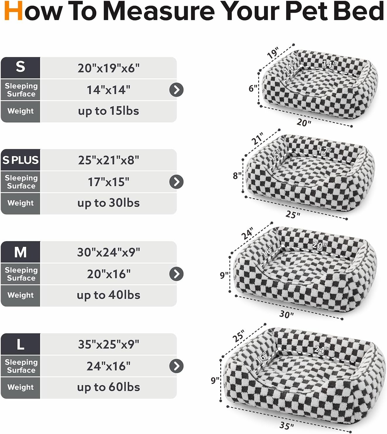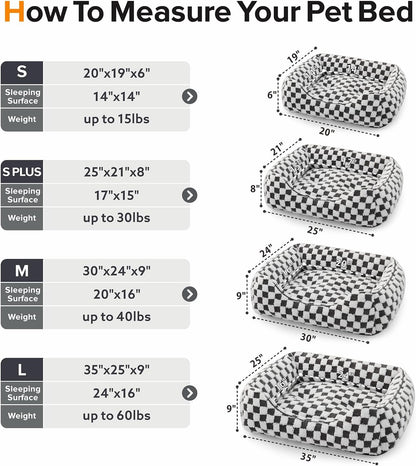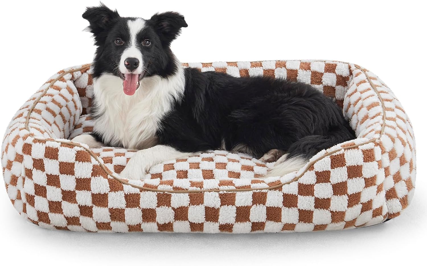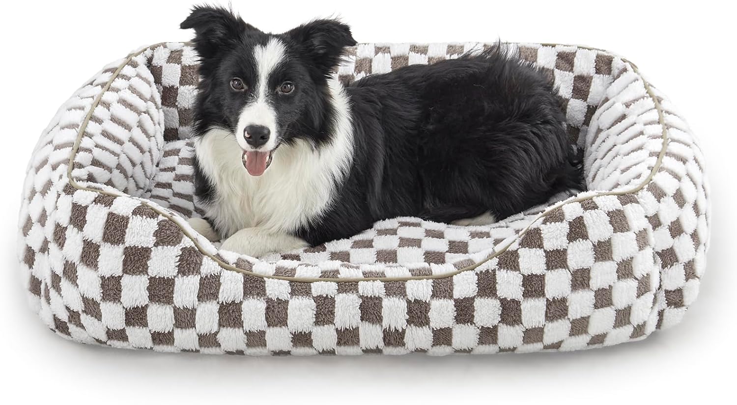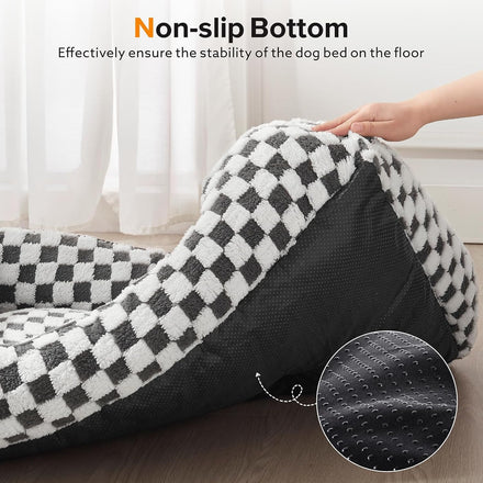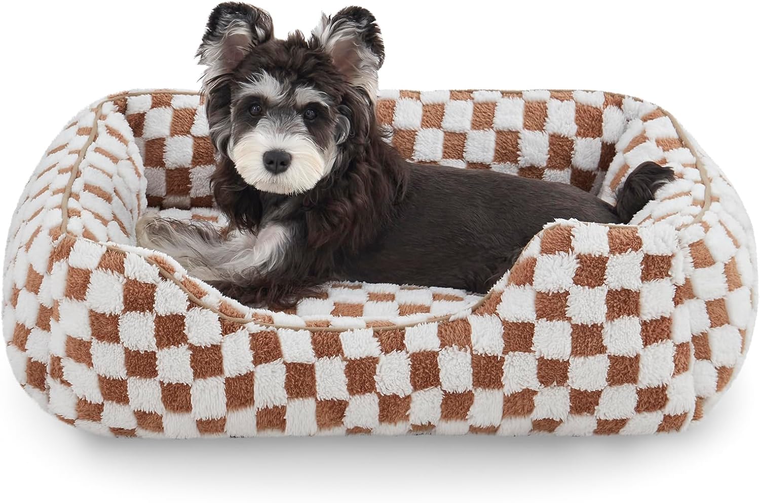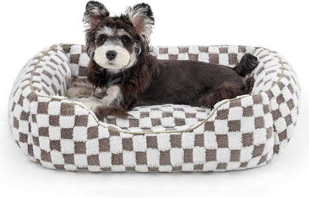 - 🐶Stylish and Cozy Design: Made with super soft Jacquard short plush material, this dog bed is warm and comfortable. Unique colors and Checkboard patterns add a dash of style to your decor, creating a cozy and charming space. Your pet will love snuggling up in this cozy and cute bed, ideal for all seasons