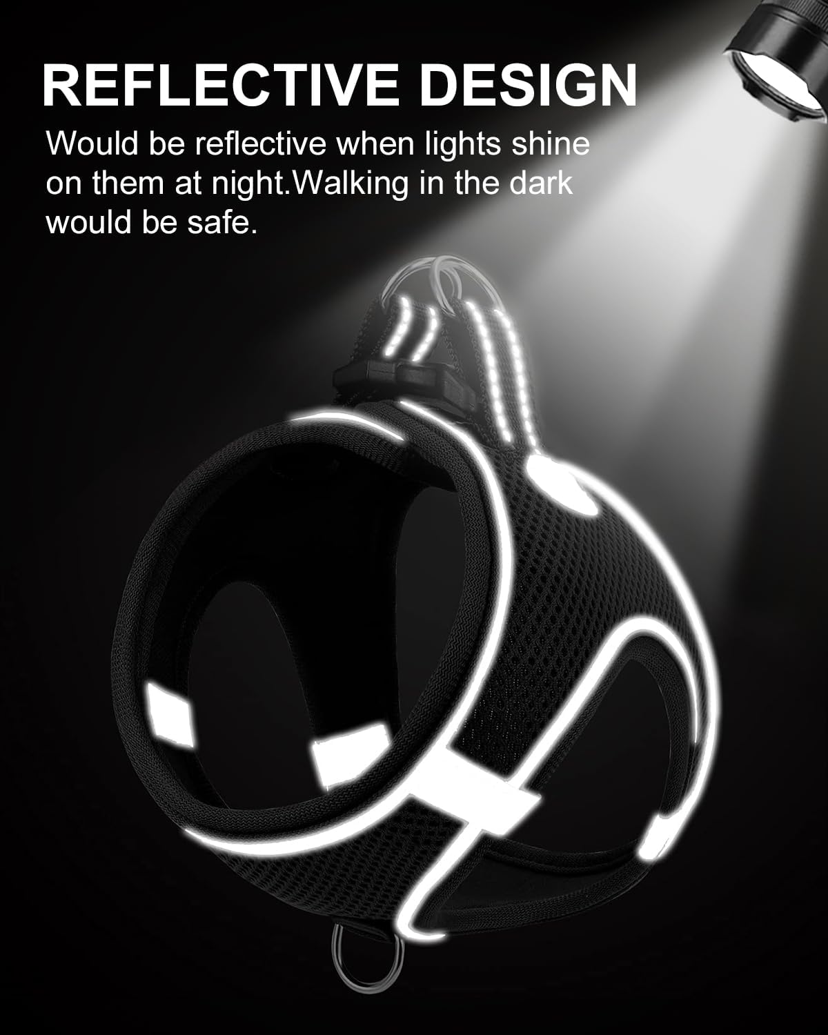 - Reflective Design: This dog harness features 360° highly reflective strips and 4 reflective wide bands for visibility in the dark. Includes a quick-release buckle for added safety