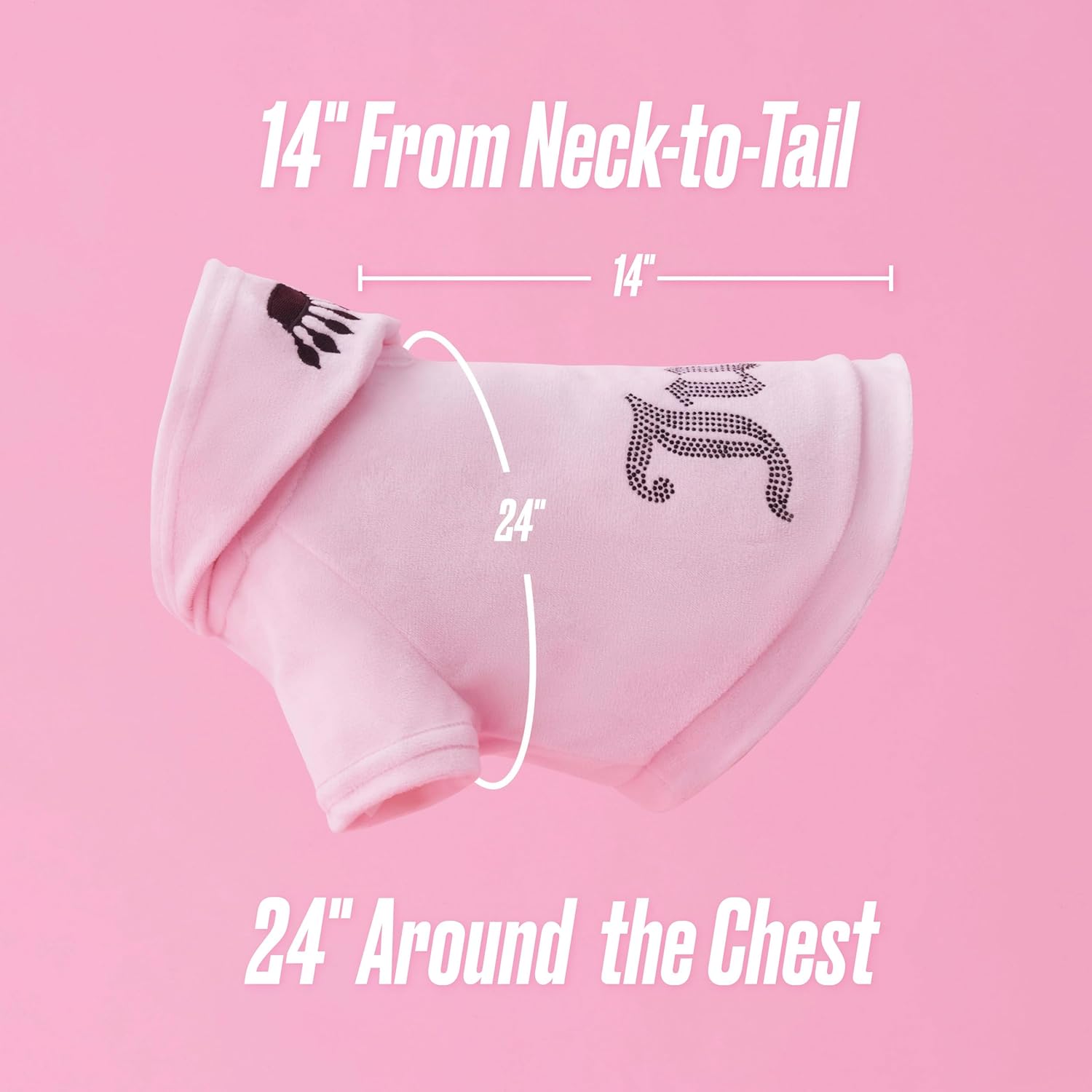 Upgrade your small animal's wardrobe with the Juicy Couture Bling Velour Hoodie. This designer pet apparel is more than just clothing; it's a statement of style and luxury. Whether you're dressing up your pet for a special occasion or keeping them cozy during cold weather, this hoodie delivers on all fronts. Choose from an array of colors that match your pet's personality and style, and select the perfect size to ensure a comfortable fit. Juicy Couture's attention to detail and commitment to casual luxury shine through in every aspect of this hoodie. Elevate your pet's fashion game and provide them with the comfort they deserve with the Bling Velour Hoodie, a true testament to the Juicy Couture brand.