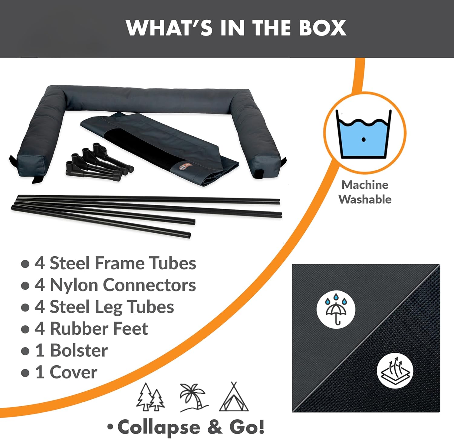 - NO TOOL ASSEMBLY: Easy to assemble and disassemble, no tools necessary making this outside dog bed great for use as a travel dog bed, camping dog bed, beach dog bed and more