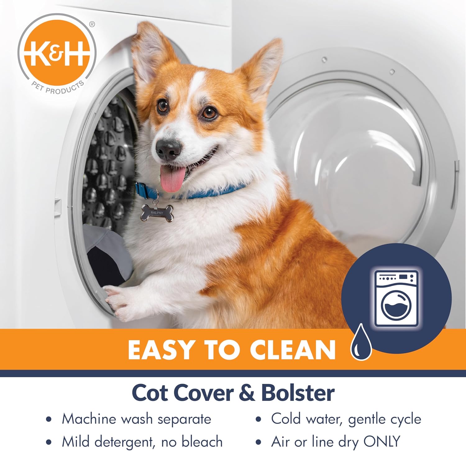 - MACHINE WASHABLE: Elevated dog bed's removable cover and bolster are both machine washable and can even be hosed off outdoors; extra covers in multiple colors are available for purchase separately as well