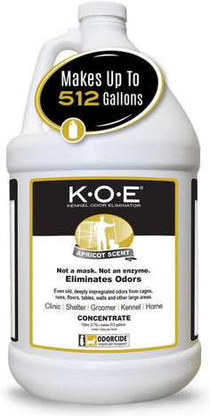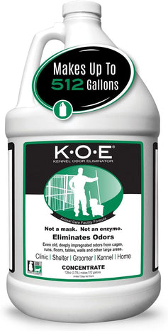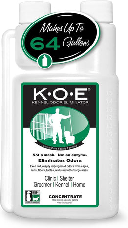 Easy to Use: Dilute KOE kennel odor eliminator concentrate with the recommended amount of water or cleaning solution. To reach the odor source, saturate the soiled area. The same dilution may be applied with a pump-up sprayer. Let air dry. If the odor persists after the concentrated deodorizer odor eliminator has dried, then reapply.