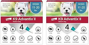 - K9 Advantix II Medium Dog 30-day treatment & prevention protects dogs 11-20 lbs. from fleas, ticks, mosquitoes, biting flies and lice