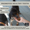 - PREVENTS PLAQUE & TARTAR BUILDUP: Our natural dog chews clean your puppies teeth, making them functional dog treats for large dogs and puppies alike.