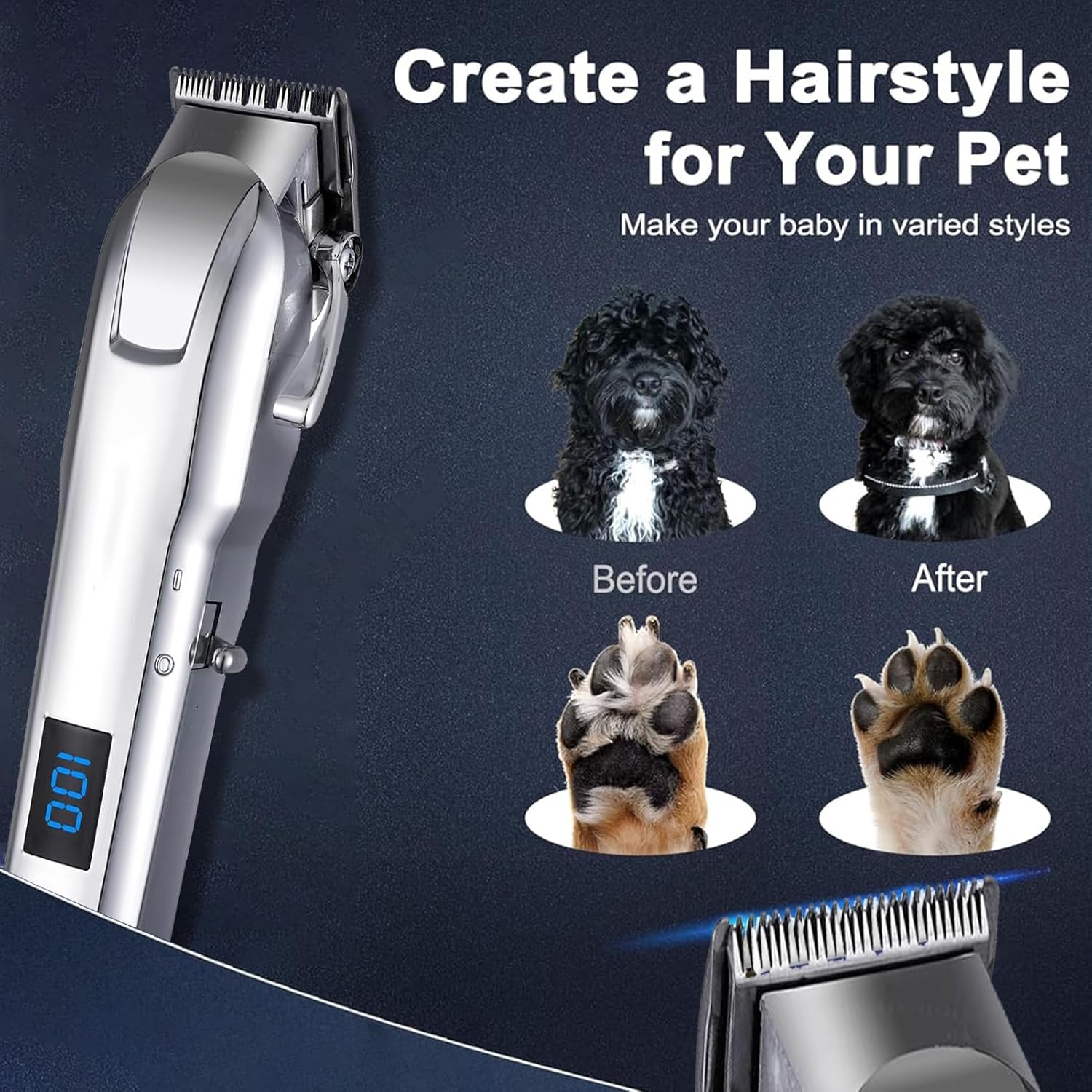 Kabellose Hundeschermaschine für die Fellpflege, Profi für dickes Haar, geräuscharmes Rasierer, Fellpflegeset mit LED-Anzeige, Rasierer Hundehaarschere Keramikklinge, Tierhaarschneider für Hunde