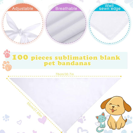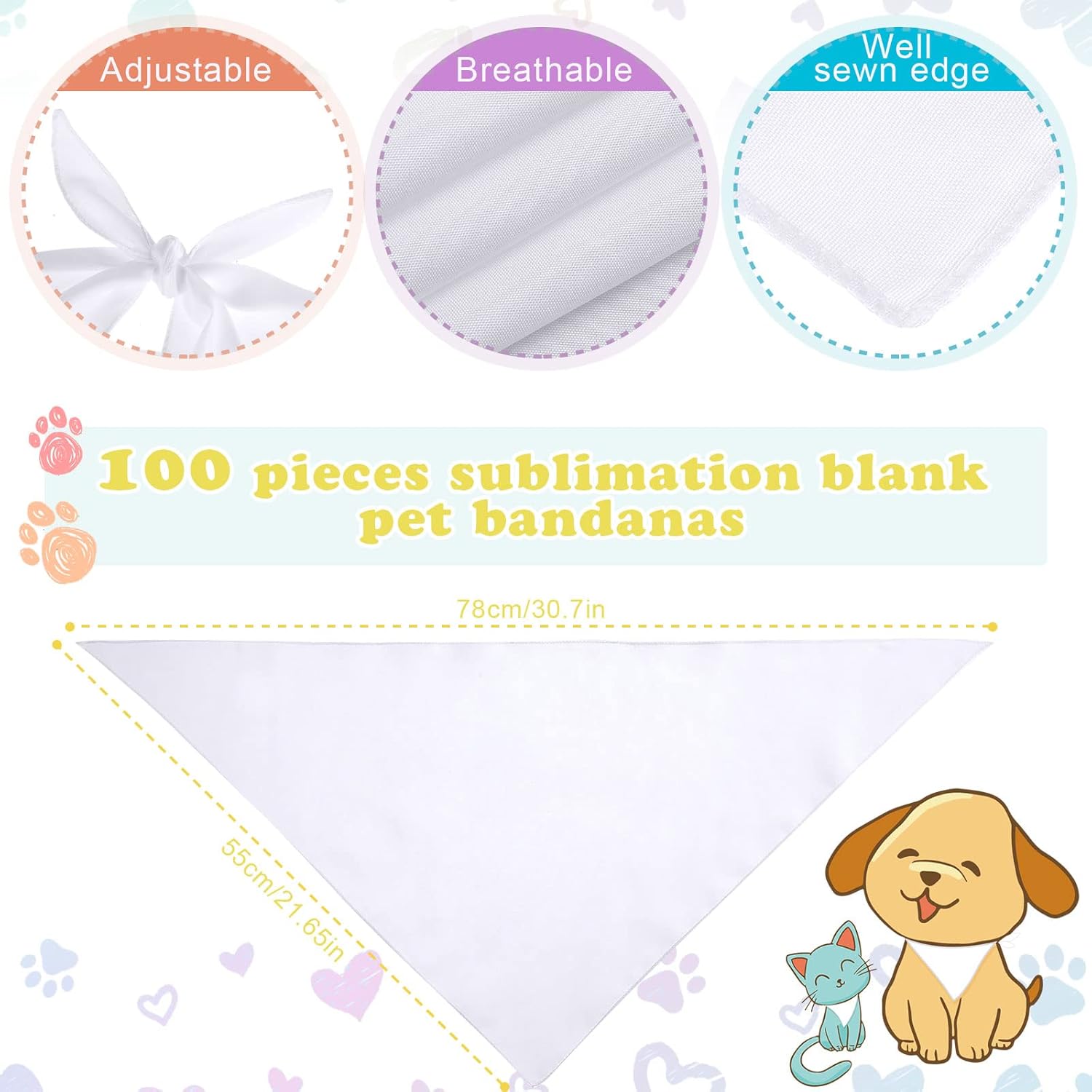 - Large Quantity: you will receive 100 pieces of sublimation dog bandanas in white color, sufficient quantity to meet your pet's various matching needs; You can also design the bandana according to your preferences, showing your imagination and creativity, making your pet cute and fashionable