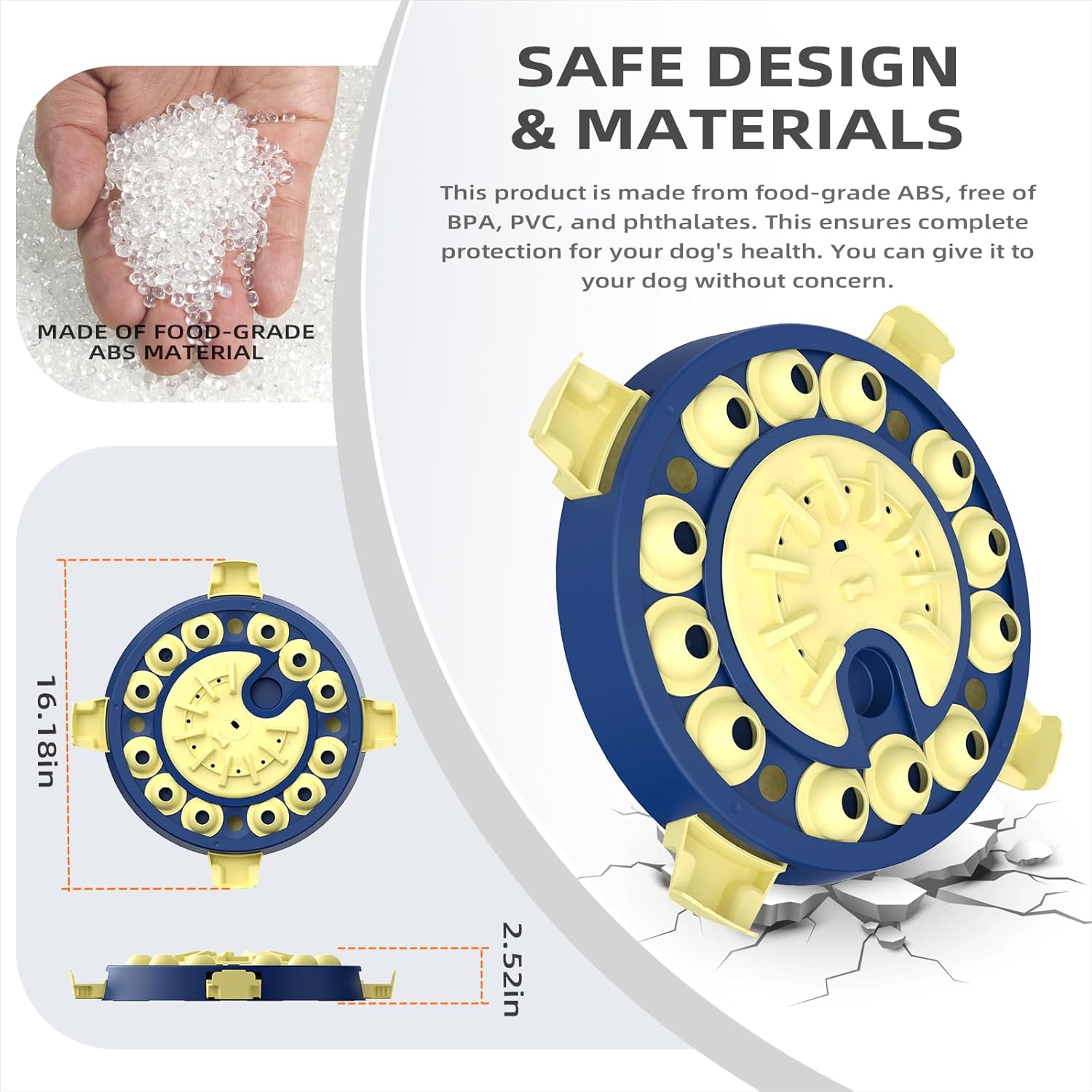 - [Slow Feeder & All Dog Breeds] This puzzle toy doubles as an effective slow feeder, extending mealtime to improve digestion and prevent gulping. By making your dog solve puzzles for treats, it encourages eating at a healthy pace, reducing bloating and choking risks. It's suitable for all dog breeds and sizes – whether small or large, every dog can enjoy the challenge and benefit from slower eating. Non-slip rubber feet keep the toy stable on hardwood, tile, or carpet, so your dog can play and feed without making a mess. Turn every meal into a rewarding experience that supports your dog's health and keeps feeding time playful and stress-free.