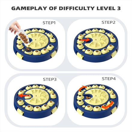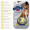 - [4-in-1 Puzzle Modes & Adjustable Difficulty] Boredom is never an issue with four different puzzle activities in one toy: sliding compartments, rotating discs, pull-out drawers, and pressable buttons that reveal hidden treats. This 4-in-1 interactive puzzle design offers a variety of challenges to keep even clever dogs on their toes. You can adjust the puzzle’s difficulty by mixing and matching these elements, making the game easier for beginners or more complex for dogs who crave an advanced challenge. It's like having multiple interactive toys in one, ensuring endless playful and enrichment as your dog learns and improves.