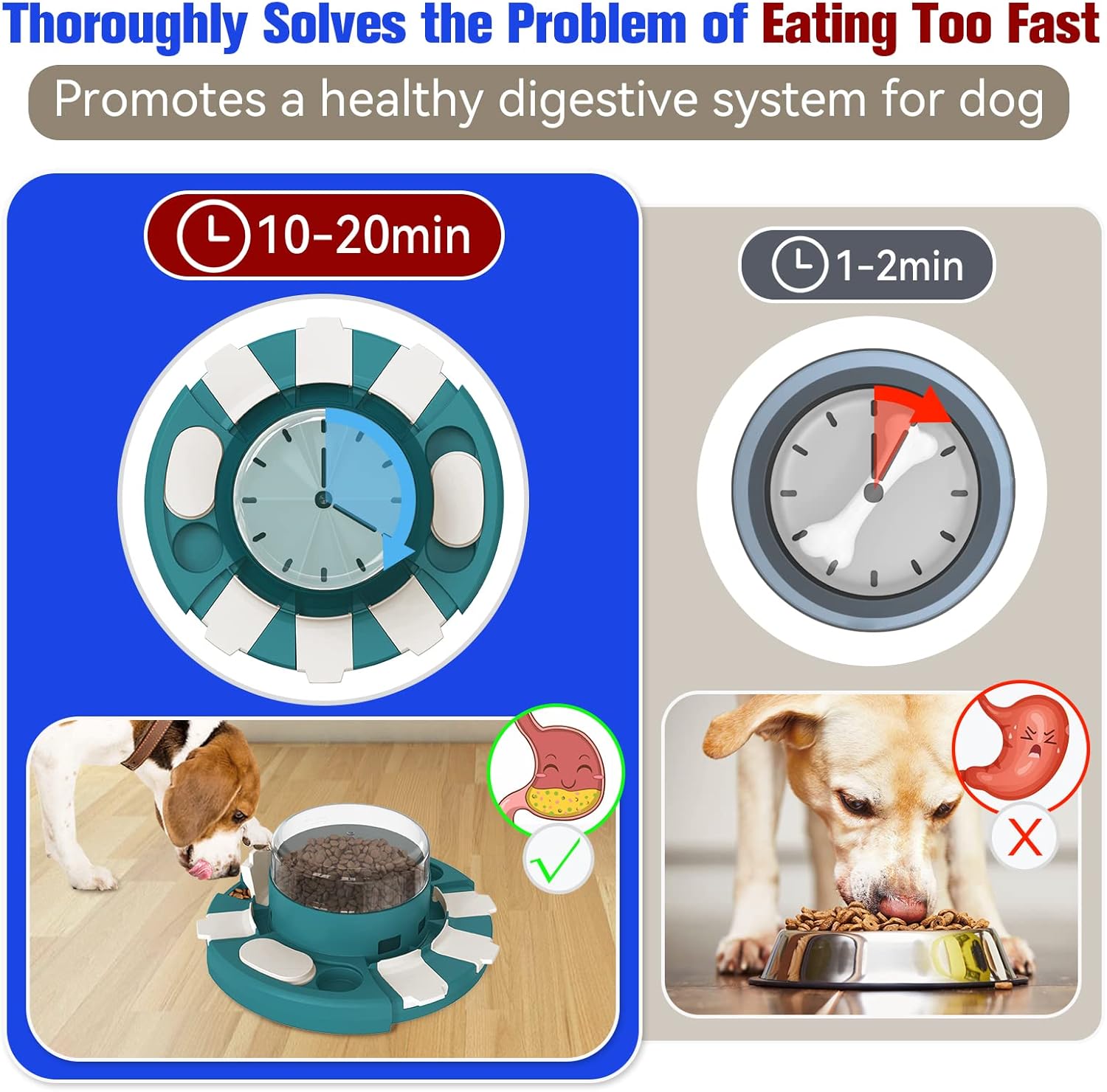 - [True Slow Feeder] The toy’s food storage compartment can hold up to 5.64 ounces of food, making it an ideal slow feeder for pets. It is designed to slow down eating habits, helping to correct rapid eating behaviors and protect your dog’s digestive health. By engaging in the process of obtaining food, the toy stimulates your dog’s mind, alleviates anxiety, and promotes emotional stability, allowing your dog to better integrate into family life.
