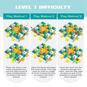 - [Instructions for Difficulty Level 2] First, rotate the cross-shaped top lid and add food to the grooves. Then, push the four movable square sliding lids to the four corners of the cross-shaped top lid, locking it in place and preventing rotation. Dogs need to first push the square sliding lids, then rotate the cross-shaped top lid to access the food.