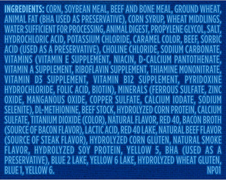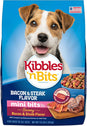 Product Description Maximize your furry friend’s mealtime fun with a small breed dry dog food that’s easy for small dogs to chew and exciting for dogs of all sizes. Kibbles ‘n Bits Mini Bits Bacon & Steak Flavor dry dog food features both crunchy kibble and the brand’s signature bits made with real meat. It’s a dance party of flavor and texture in every bowl — all in pieces little enough for even the littlest breeds to enjoy. Every serving delivers complete and balanced nutrition for adult dogs, and every batch is proudly produced in the USA from globally sourced ingredients. So you can feel good about feeding your dog this bacon-y, steak-y flavored goodness every single day! Manufacturer Contact Information Post Consumer Brands, 20802 Kensington Blvd, Lakeville, MN 55044