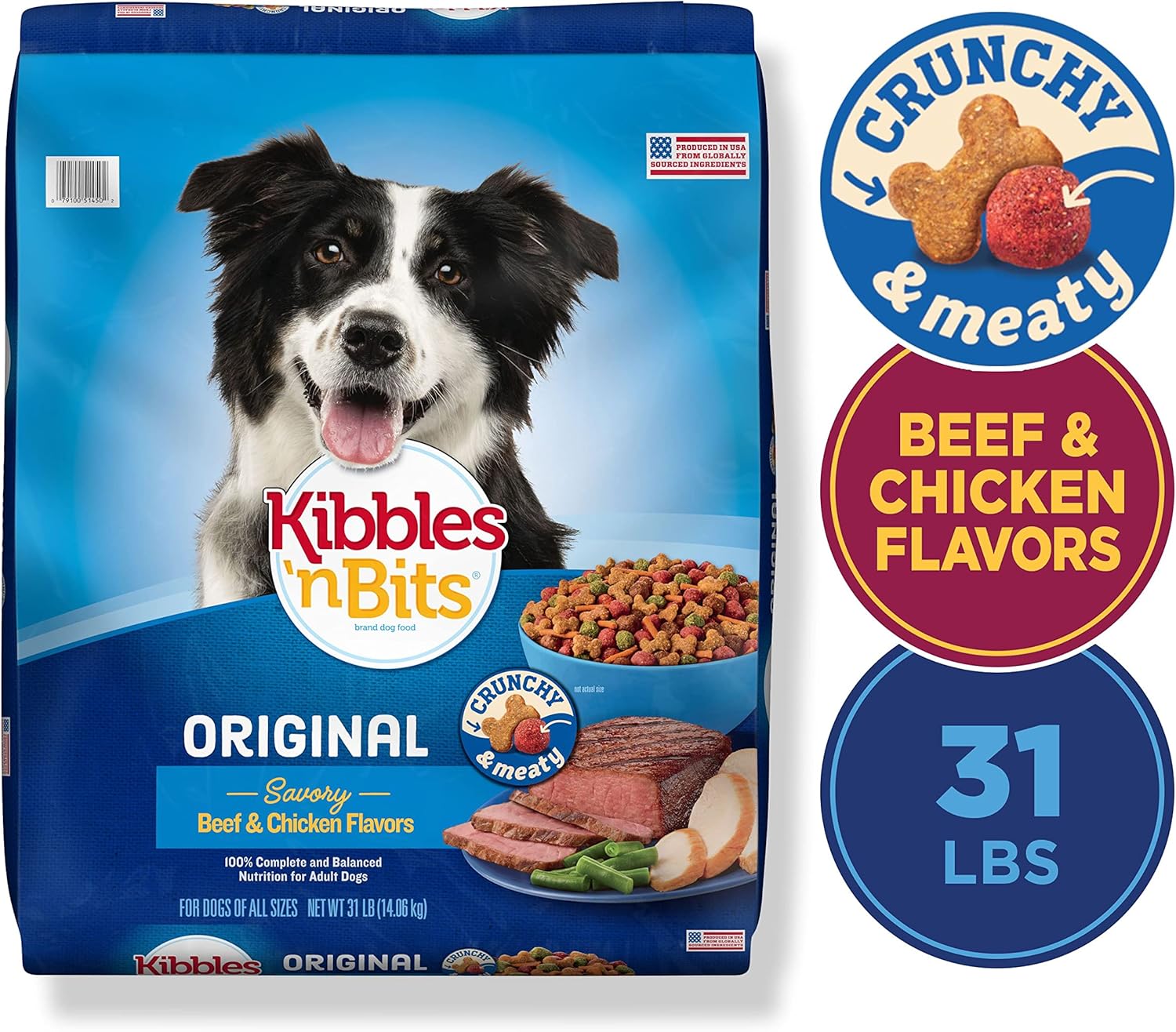 - Contains 1 - 31 Lb Bag of Kibbles 'n Bits Original Savory Beef & Chicken Flavor Dry Dog Food
