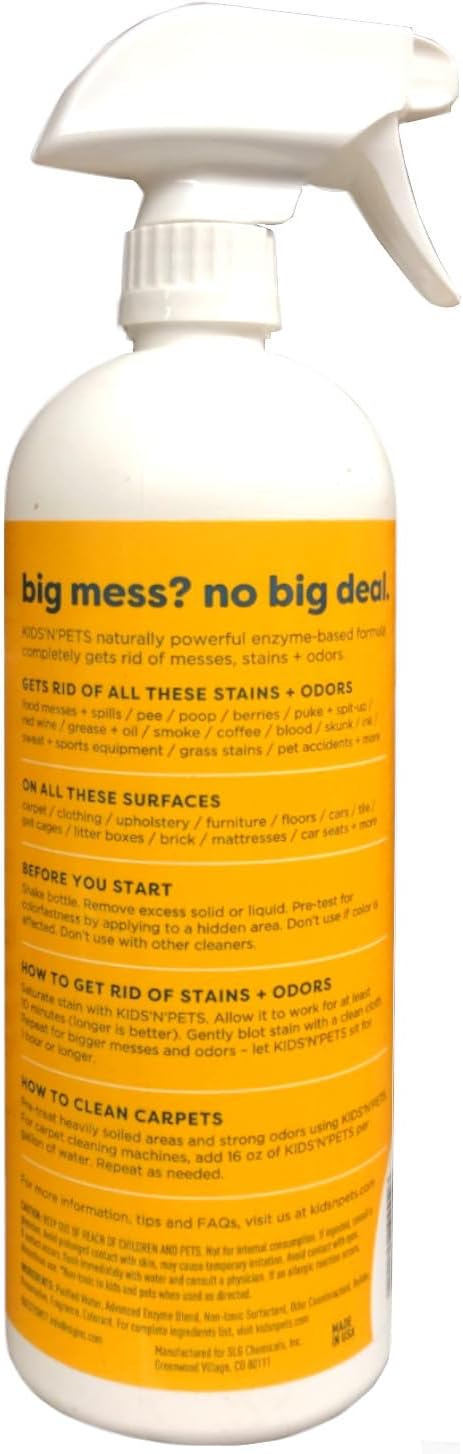 KIDS 'N' PETS – Instant All-Purpose Stain & Odor Remover – 27.05 oz - (800 ml) – Pack of 2 - Proprietary Formula Permanently Eliminates Tough Stains & Odors – Even Urine Odors