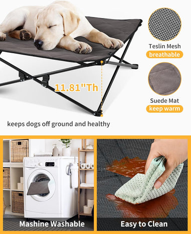 - EASY TO CLEAN & MAINTAIN: Featuring a breathable, durable Teslin mesh surface that wipes clean with a damp cloth, this medium dog cot is built for hassle-free maintenance. The removable cushion with suede-like fabric and Oxford cloth bottom is machine washable, making cleaning a breeze.