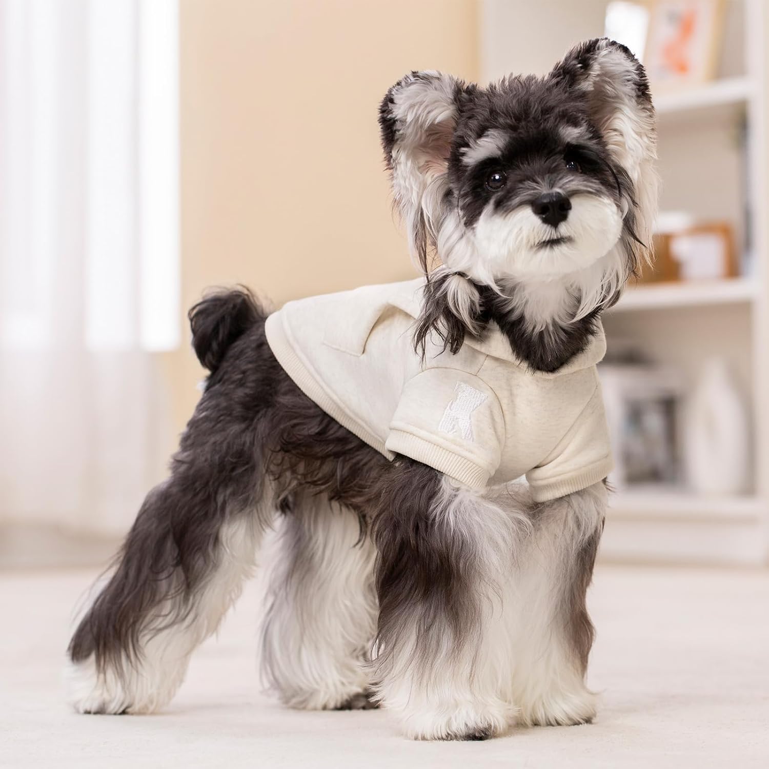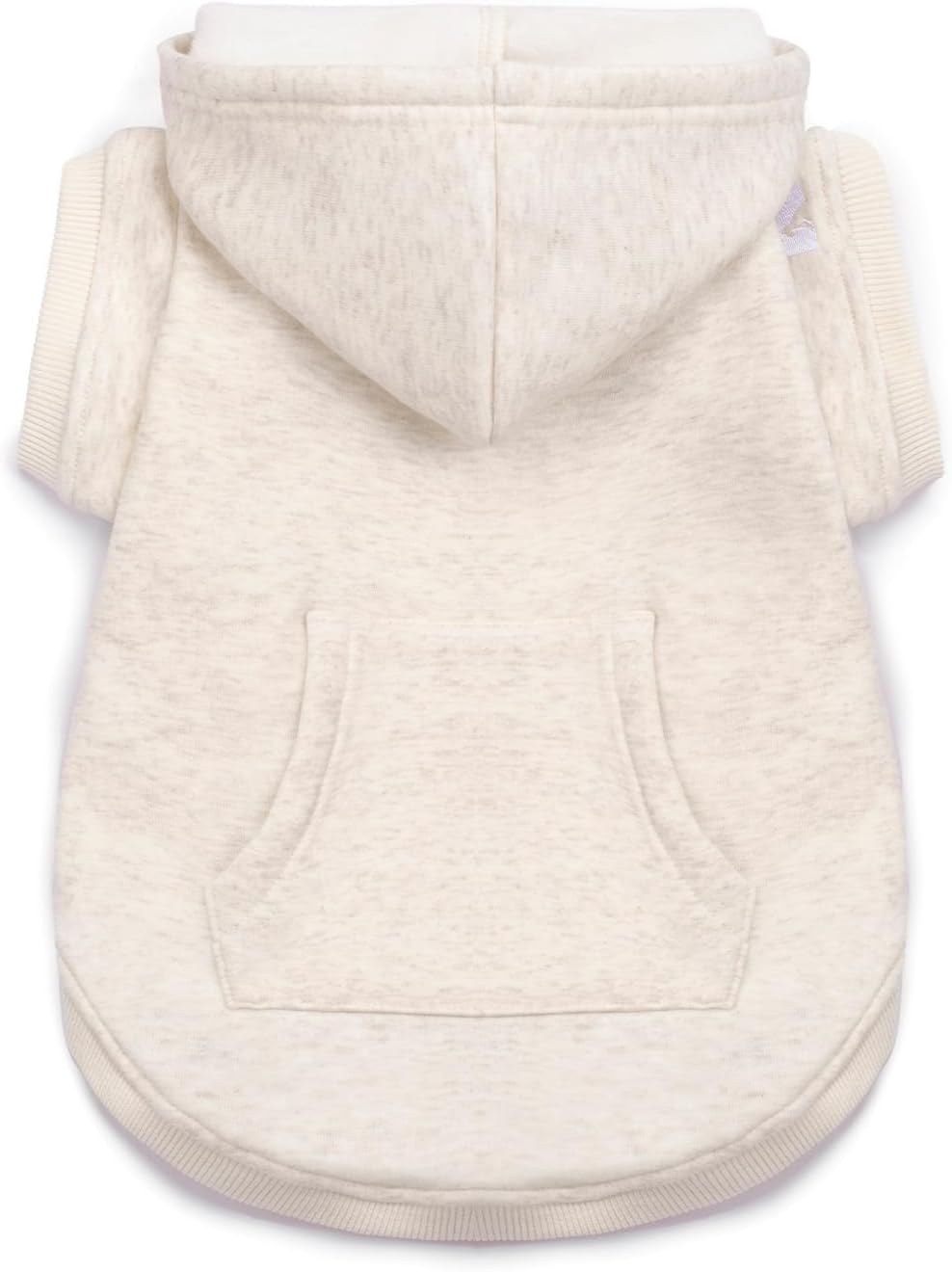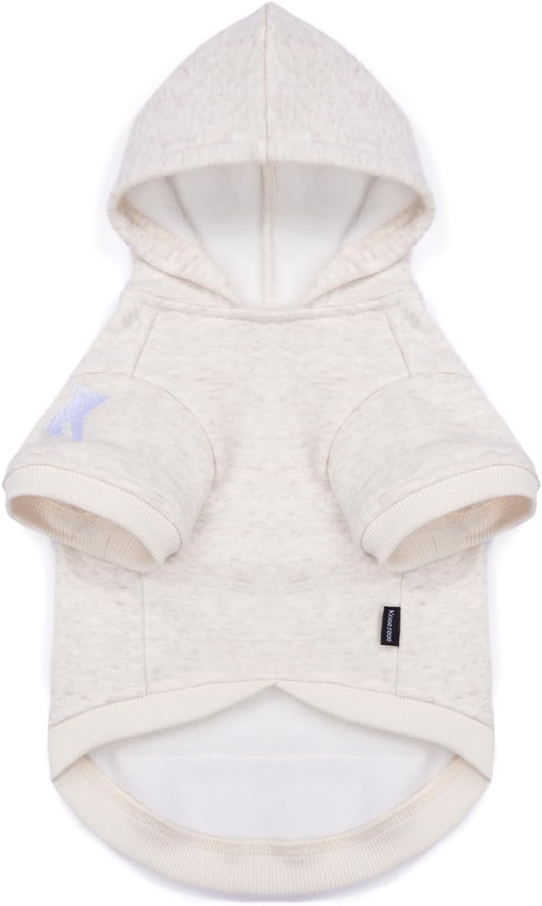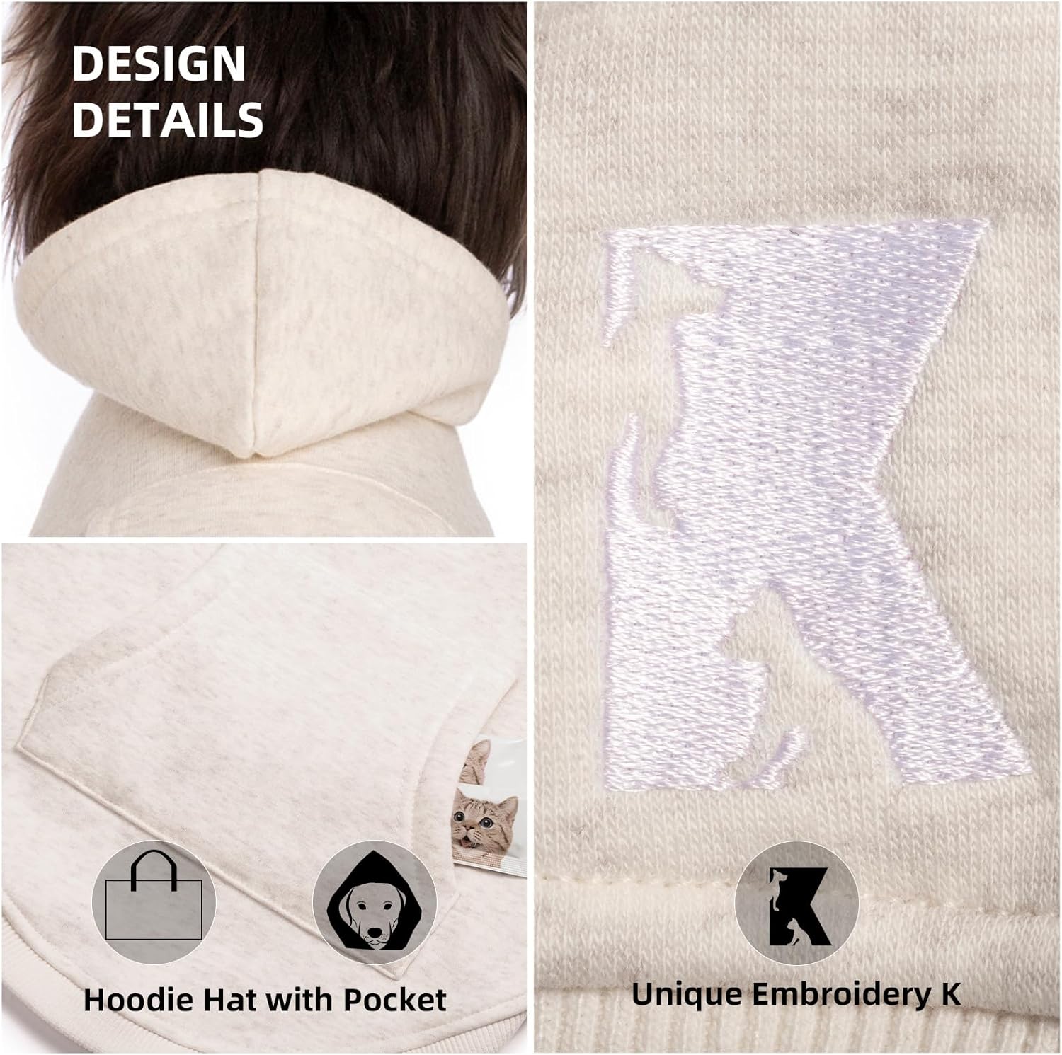 Koneseve Dog Hoodie Fleece, Cat Sweater Warm with Pocket - Soft Clothes for Daily Wear, Basic Hooded Sweatshirts, Winter Coat Clothing, Comfort Tee Shirt Fit for All Breeds Pet - Beige - L