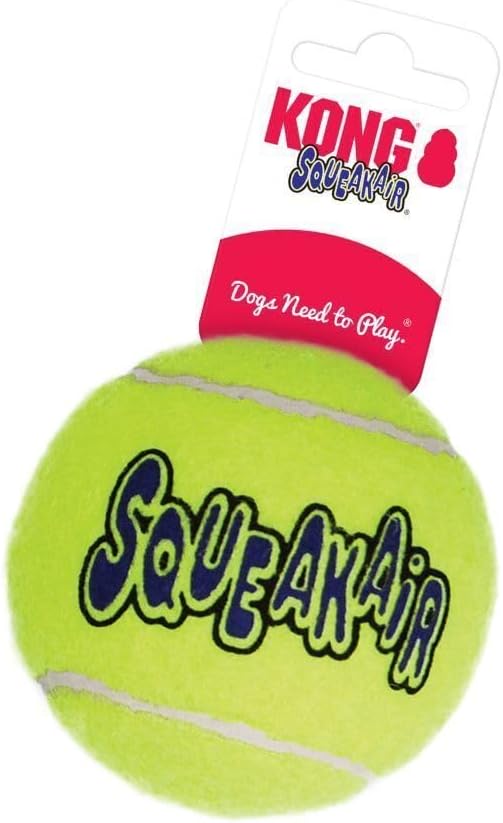 The KONG AirDog Squeakair Ball combines two classic dog toys — the tennis ball and the squeaker toy — to create the perfect fetch toy. Our durable, high-quality Squeakair Ball will not wear down your dog’s teeth. It’s made with a special non-abrasive felt, compared to the abrasive material on normal tennis balls. This is an offering for multi quantity bundle - 4 count