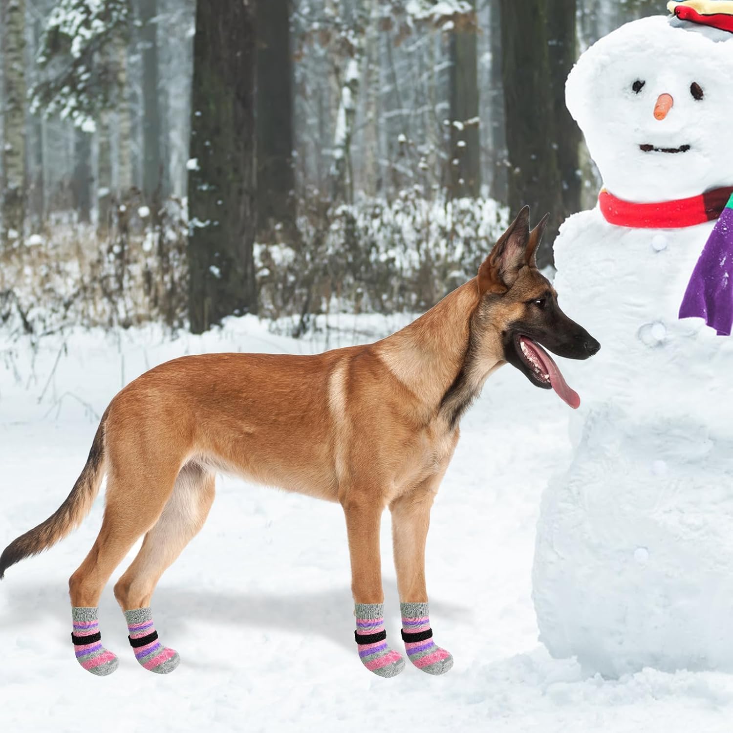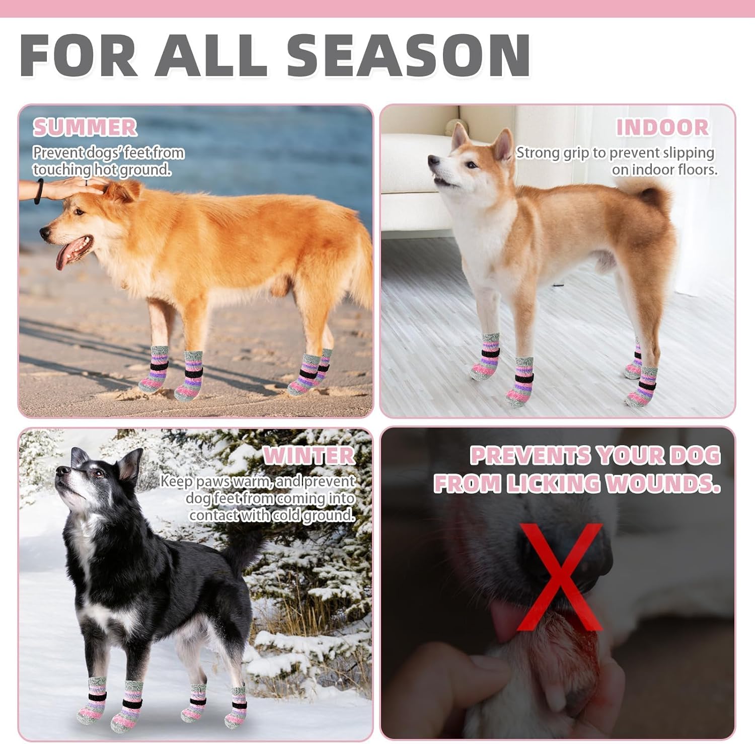 MULTIFUNCTIONAL: Suitable for small medium large dogs, prevents your dog from licking wounds, from getting burned on the hot pavement in summer, and from getting frostbite in the cold winter. More comfortable than boots, shoes, or paw pads. In addition, it prevents naughty dogs from scratching the sofa and floor. A Practical dog sock Gift!