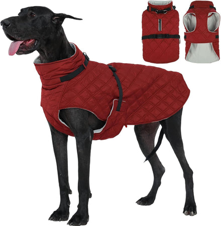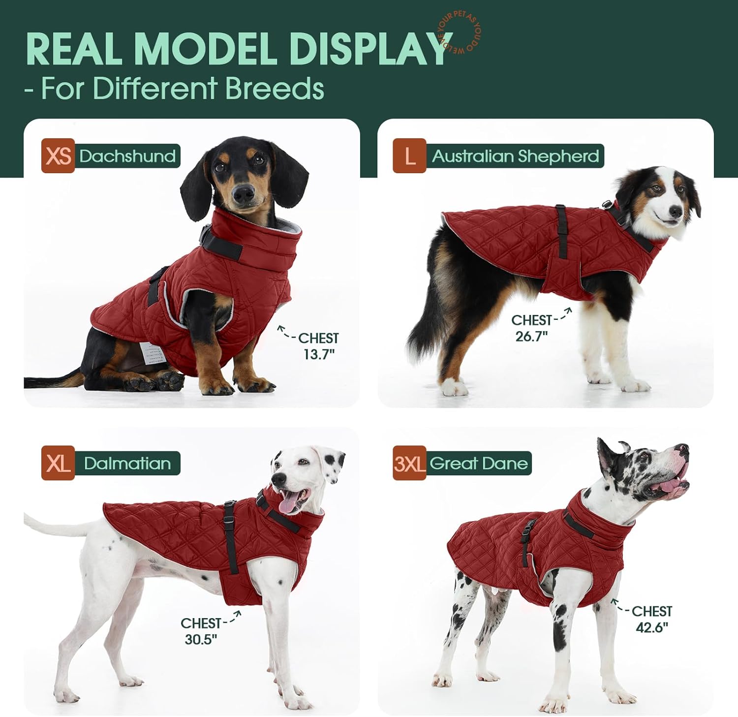 Warm And Waterproof:The thick, insulating polar fleece lining and turtleneck collar envelops your dog in comfort and warmth during the cold weather. Outer of the large dog coat is windproof waterproof, helps pup stay dry and clean from rain or snow