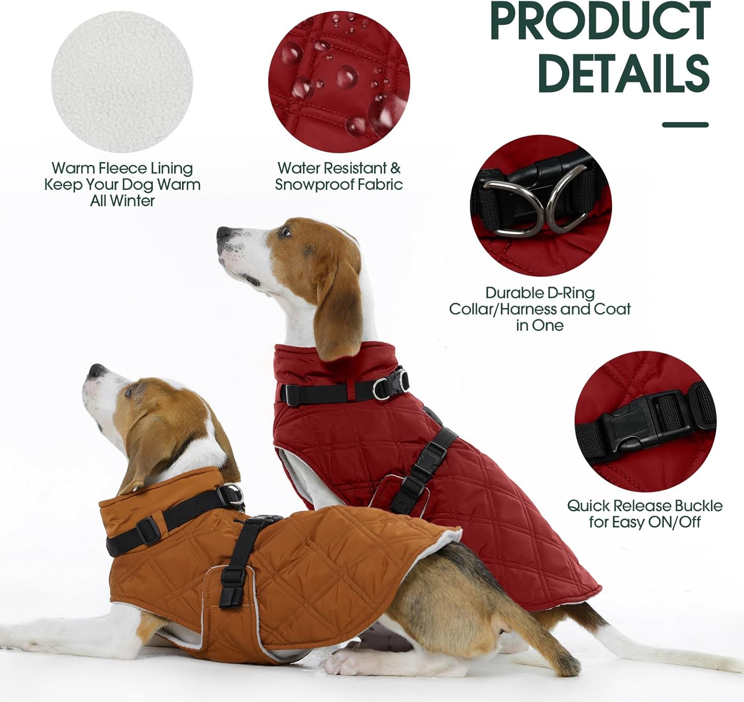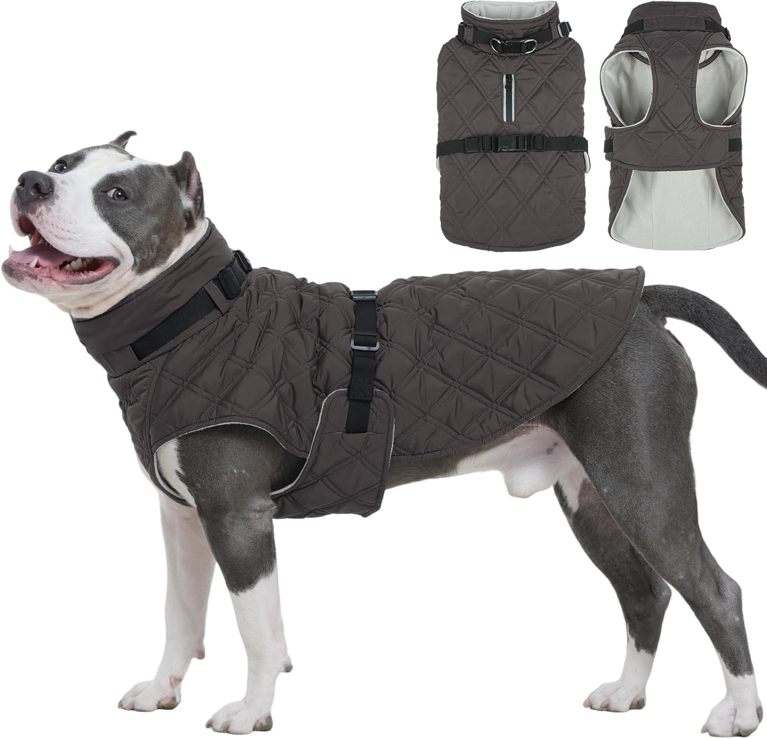 - Kuoser Dog Winter Coat with Built-in Harness: This innovative design eliminates the need for a separate harness by incorporating D-ring attachments directly into the coat. Enjoy smoother and safer walks with this two-in-one solution, ideal for outdoor adventures