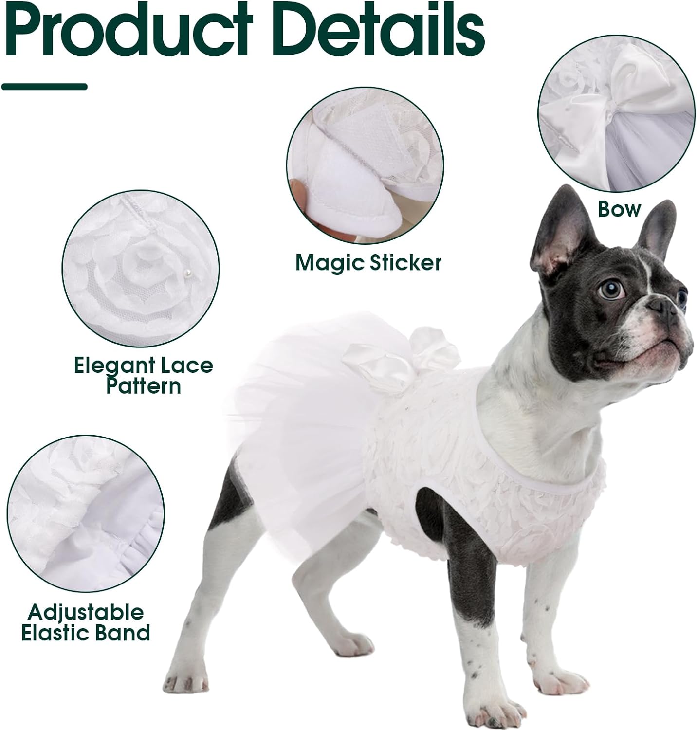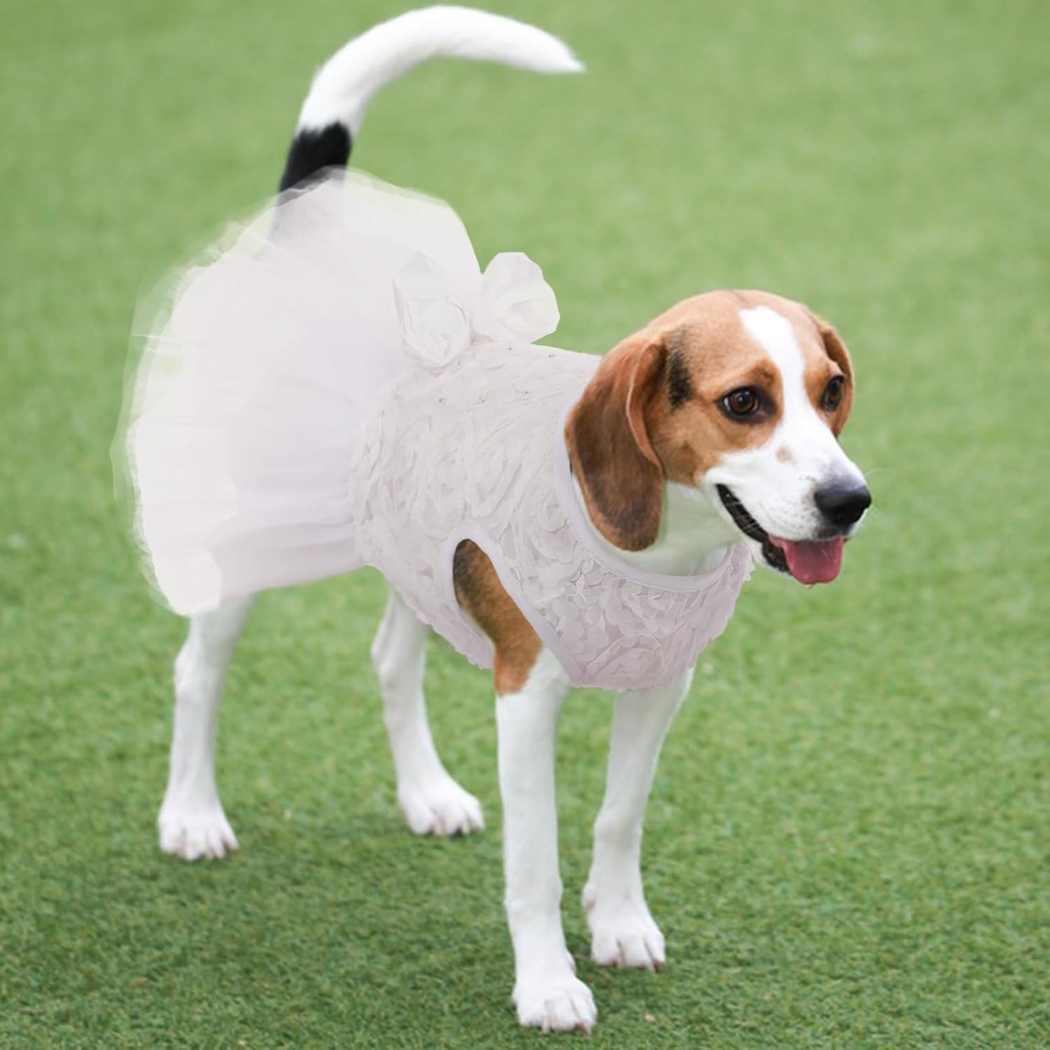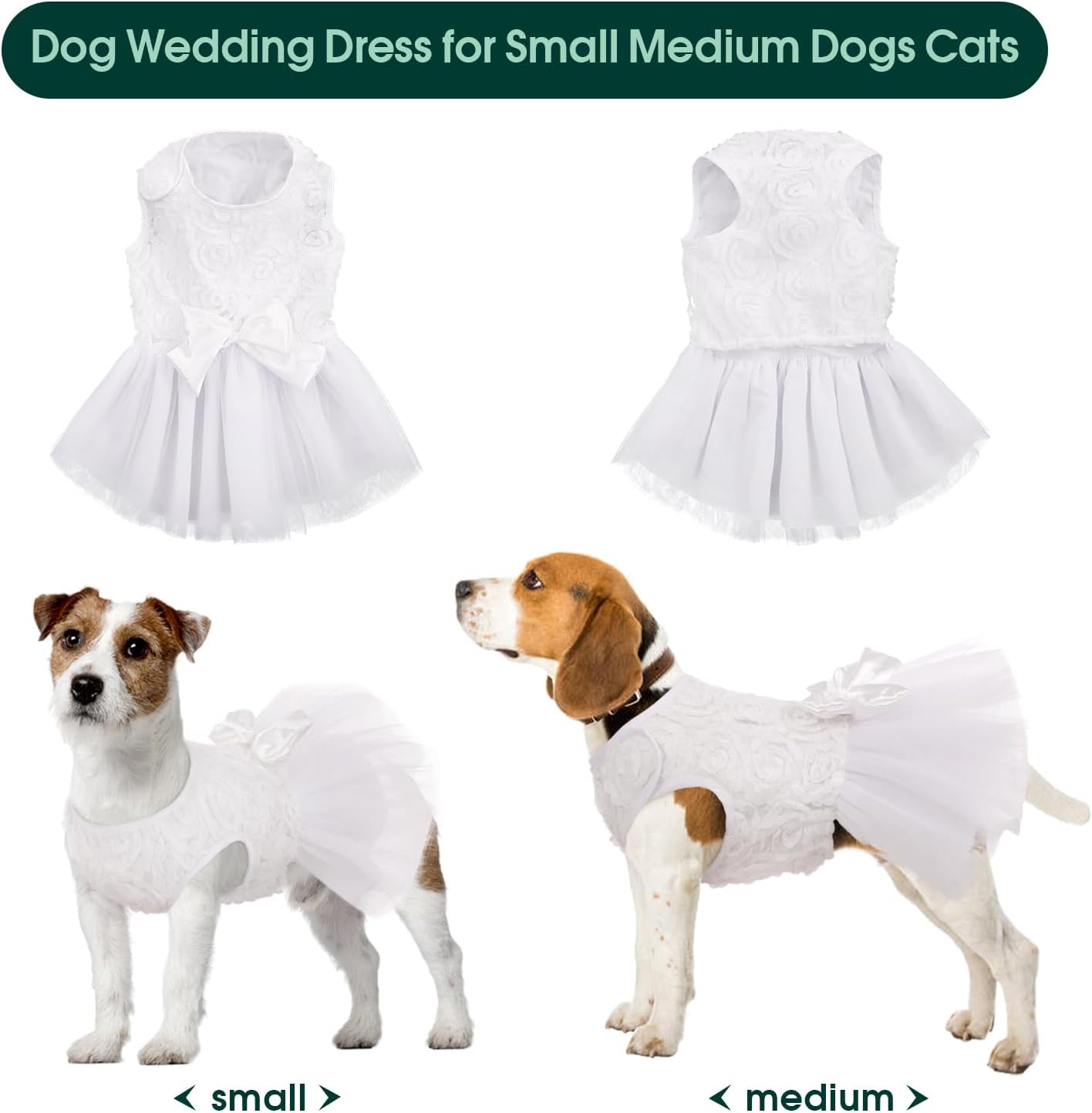 Light and Comfy Dog Dress: Made with a lace surface and a breathable, lightweight cotton fabric lining, Our dog wedding dress is suitable for pets with skin sensitivities.The dog tutu outfit features materials that prioritize comfort for your pet