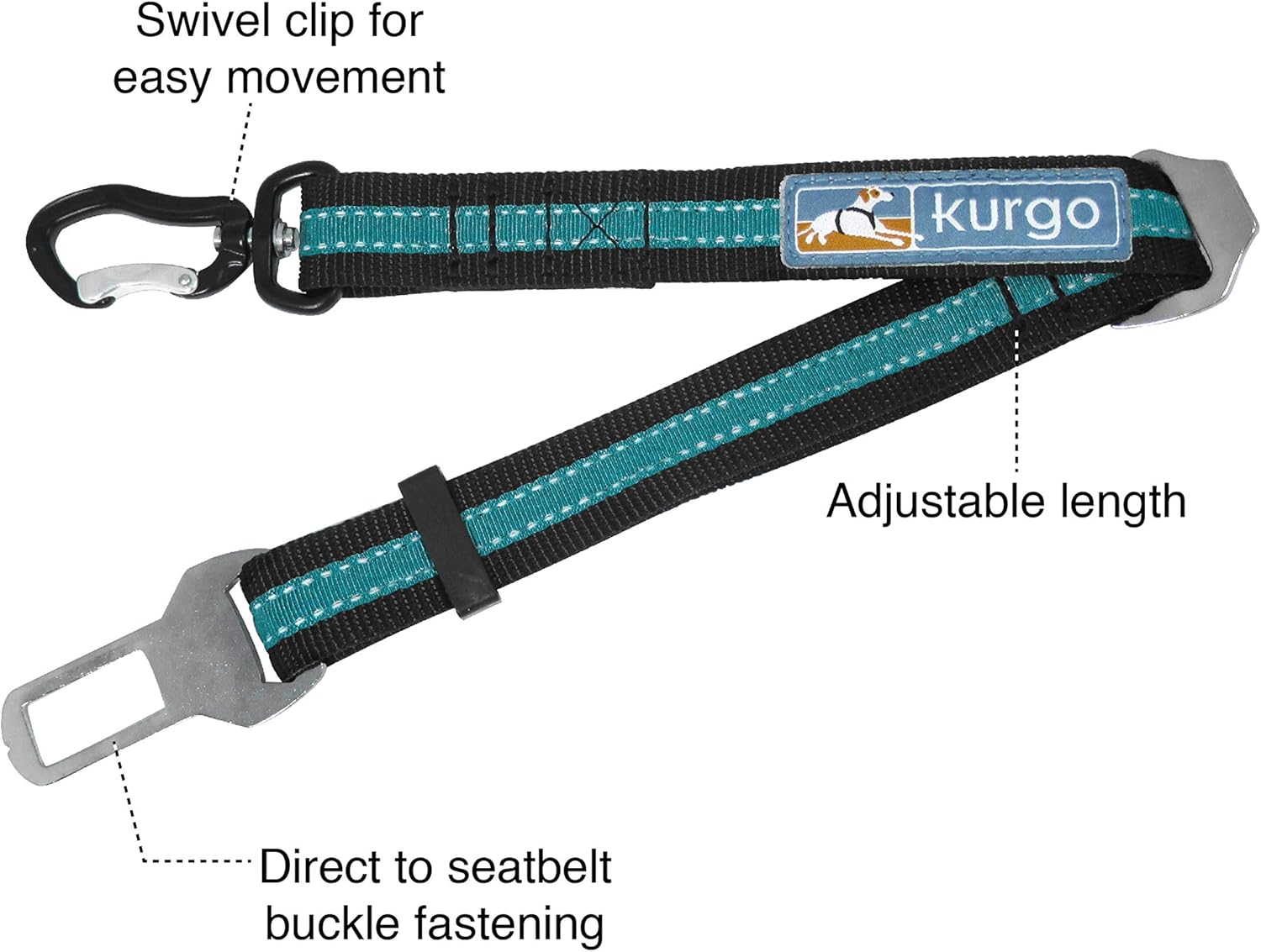 The Kurgo direct to seatbelt swivel tether allows you to simply click-and-go. This easy-to-use dog seatbelt tether has a swivel carabiner that attaches to your dog harness so they won’t get tangled when they move from side to side in the rear passenger seat. The tether is also adjustable from 15” – 22” so you can decide how much freedom of movement you'd like your dog to have. There is no need to undo the dog seatbelt every time your dog gets in or out. Now you can have the peace of mind that you and your pup are traveling safe with added convenience for you. Universal fit for most vehicles. Quickly clicks directly into the female seatbelt slot.