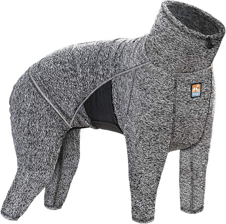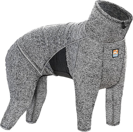 If your pup needs full coverage, the Stowe Base Layer is designed to provide a cozy layer on those chilly fall days. With this dog bodysuit, the possibilities are endless. Use as a post-surgery recovery suit, or as a containment suit for shedding. On those extra frigid days, layer your favorite dog coat on top for full coverage ie: the Kurgo North Country Coat or Loft Jacket (sold separately). Completely breathable four way stretch polyester/spandex fabric for a comfortable & cozy fit. Includes dual zippers for easy harness or collar access. The tall, protective collar acts as a scarf to keep your dog's neck warm. Plus, it's easy to take your dog outside to do their business with the open area in the back. When measuring your pup, back length is the most important. Sleeve length will vary based on the height of the dog. Care Instructions: Machine wash gentle cycle, air dry or tumble dry low.