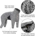 - Suitable for Indoor/Outdoor Wear - Open area in the back for easy bathroom breaks, with leash opening for easy access to harness or collar. The black belly band provides a body conforming fit & can be used to prevent anxiety. High collar acts as a dog scarf to keep their neck warm.
