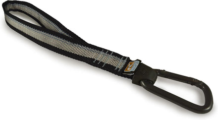 Secure Fido in every vehicle with this heavy-duty dog seatbelt tether with swivel from Kurgo. Working in conjunction with the Tru-Fit smart dog harness, this tether offers the same pet seatbelt security as Kurgo's regular tether, plus easy swivel movement to accommodate dogs that wiggle and move around a lot. It is sure to contain any escape artist pup. This is our strongest tether system, featuring a carabineer used by arborists and a strong, lightweight aluminum hitch. It has been tested to support 20 KkN or 4,500 pounds of force. The swivel action prevents your pup from twisting or getting caught up in the tether. The locking carabineer prevents those sneaky escape artists dogs from getting out of their restraint. Designed to restrain large dogs who never sit still. Includes a 10-inch web loop. Recommend for use with either the Tru-Fit enhanced strength harness 3055 series or 3085 series.