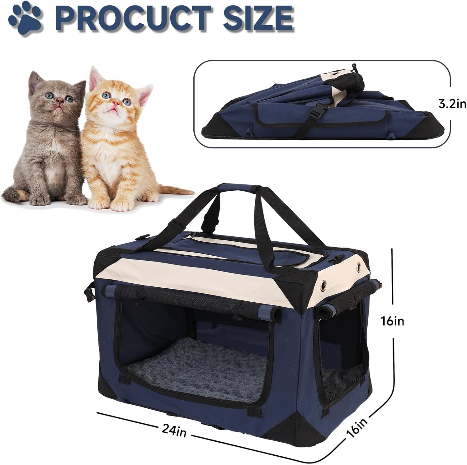 - Spacious & Comfortable Cat Bed for Home -This extra-large soft-sided pet bed (24" x 16" x 16") is perfect as a cozy cat bed for home use. It provides ample space for 2 regular-sized cats, a large Maine Coon, or a small dog. The roomy design allows your pets to rest, stretch, and turn around freely, making it an ideal relaxation spot for your furry friends.