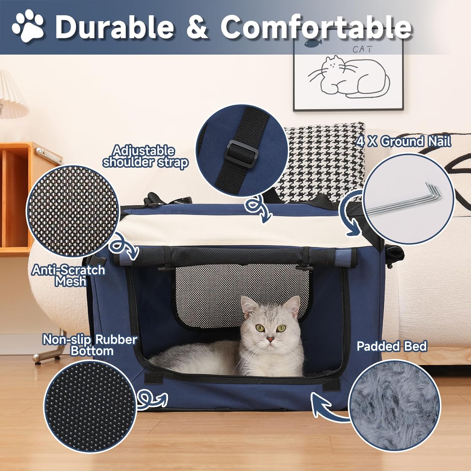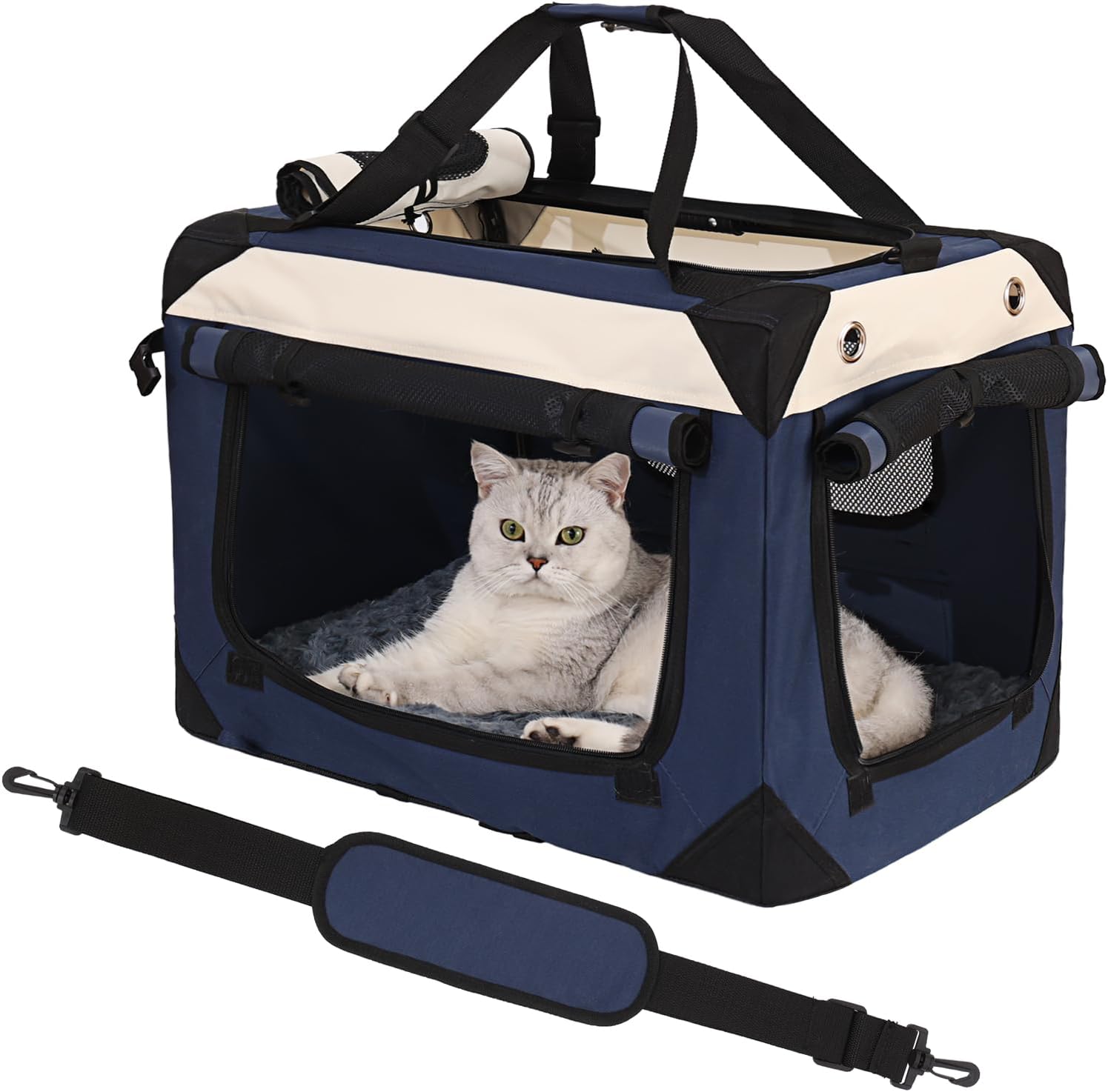 - Soft, Durable, & Easy to Clean- Made with premium-quality nylon, 600D canvas, and reinforced mesh, this pet bed is built to last. The ultra-soft, leak-proof, removable padded bed offers a plush resting area and doubles as a cozy everyday cat bed. Both the padded bed and the outer cover are machine washable, making cleaning and maintenance effortless.