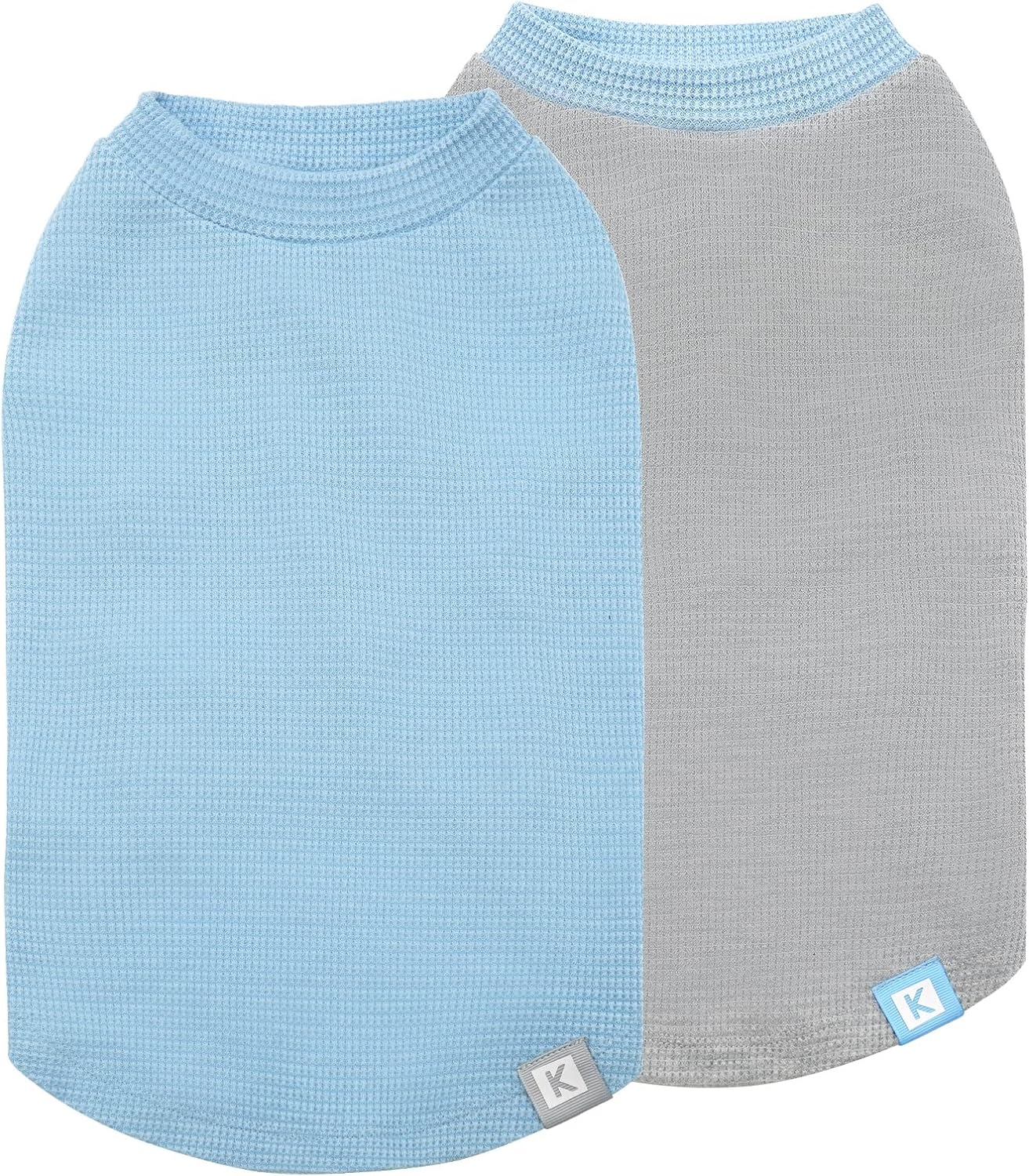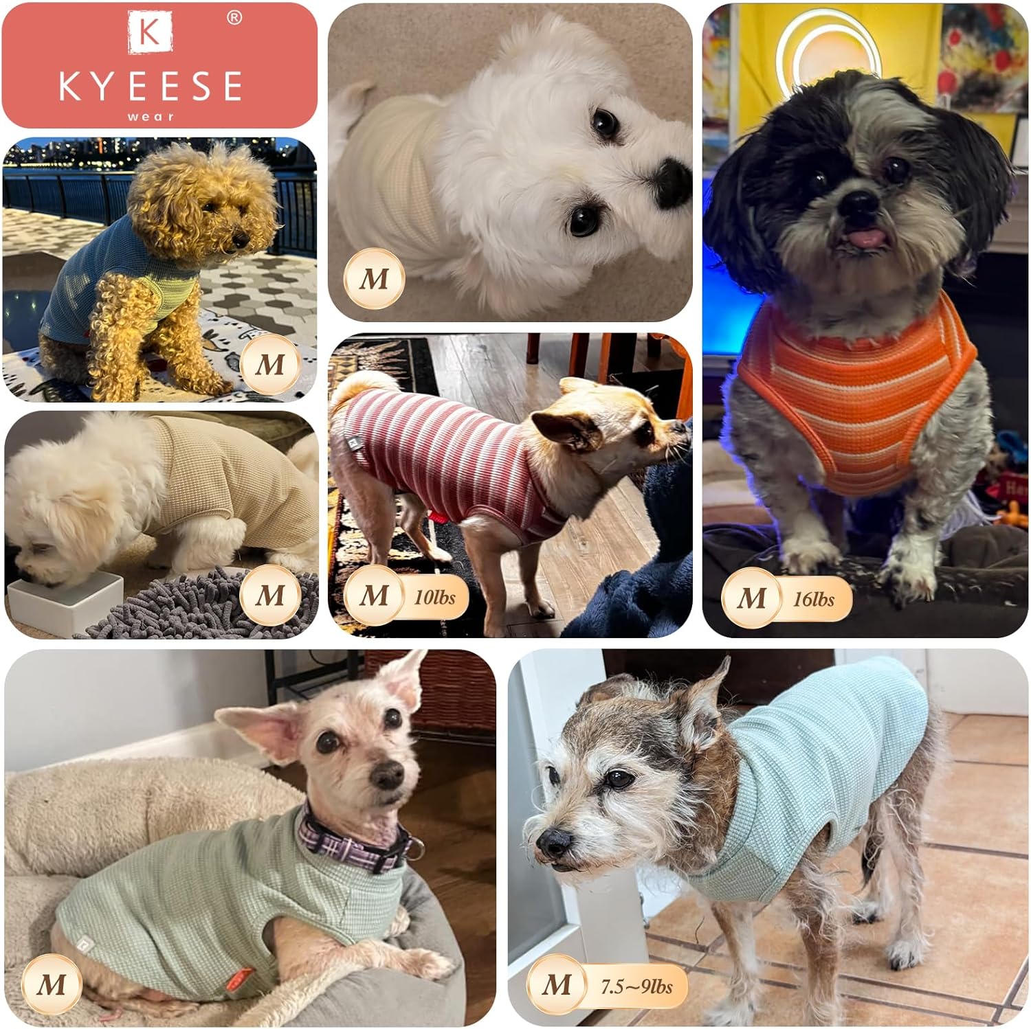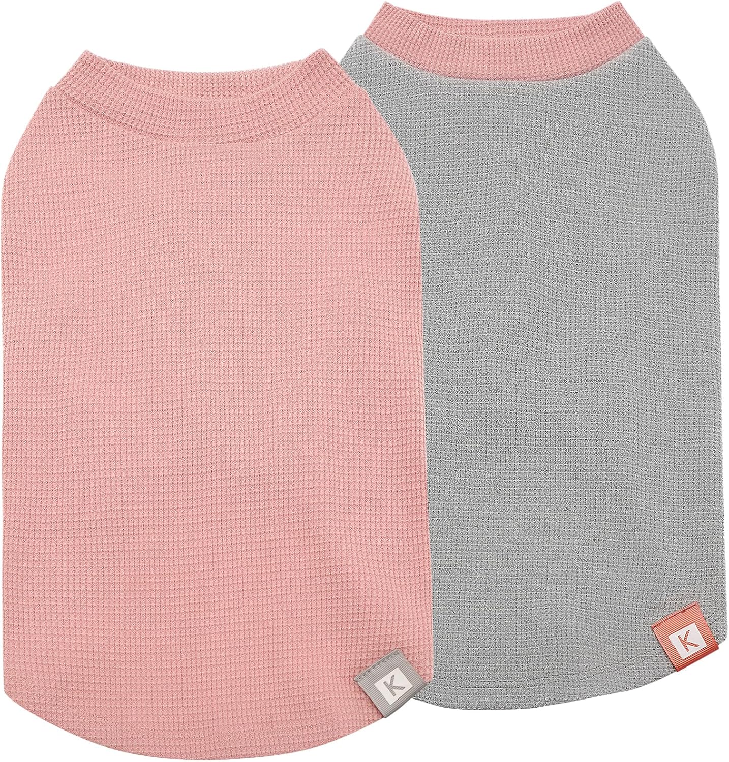KYEESE 2Pack Dog Shirts Waffle for Small Dogs Stretchy Dog T-Shirts Lightweight Tank Top Sleeveless Vest Breathable Cat Shirt, Medium, Green+Grey
