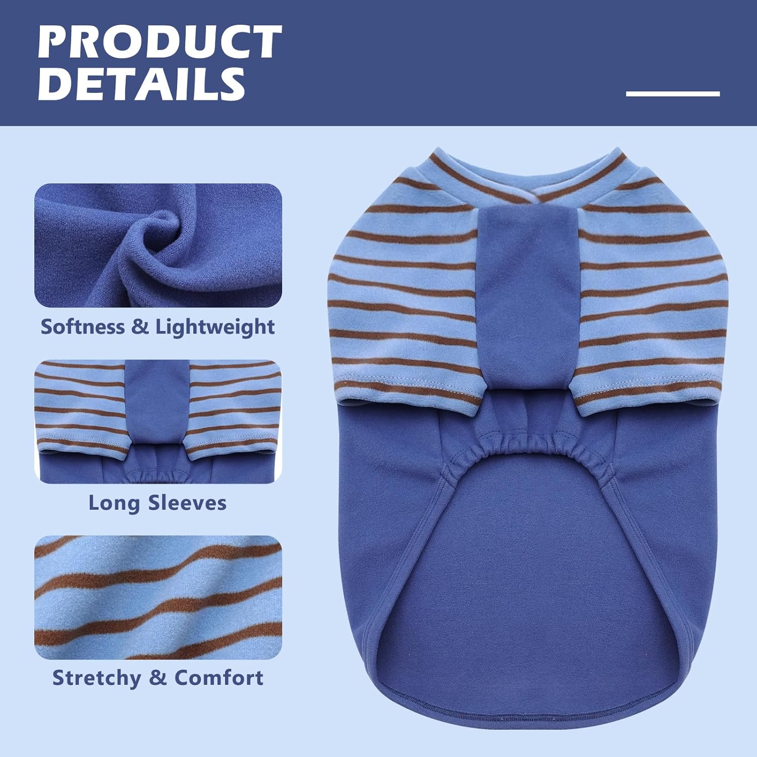 2PACK--KYEESE dog shirt with a solid color and a basic stripe pattern in a package, two styles free to change, is a must have winter essential for your pets.